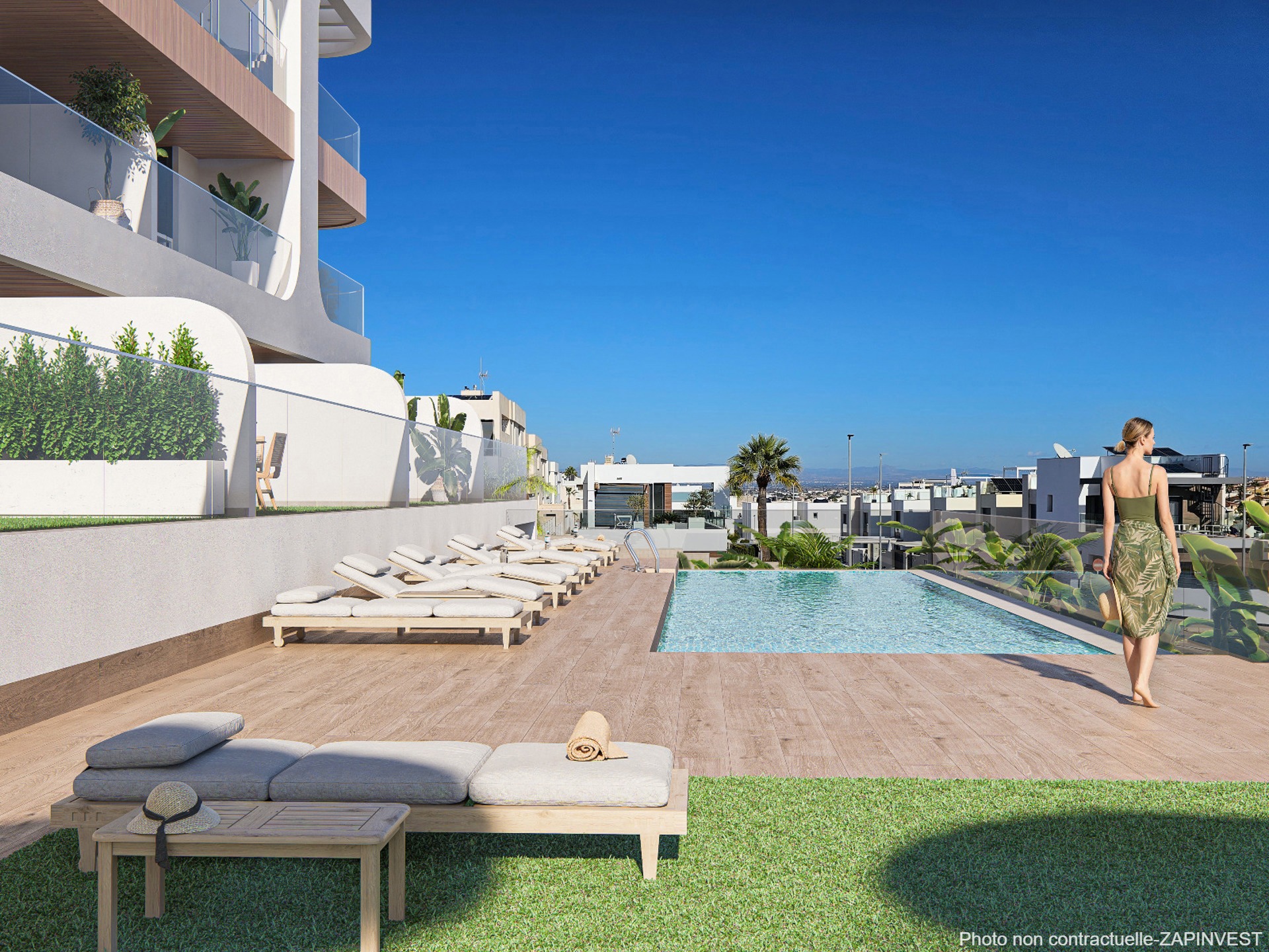 Superbe promotion d’appartements de 3 chambres et 2 salles de bain avec une superbe piscine commune, en plein cœur du charmant village de Benijofar.