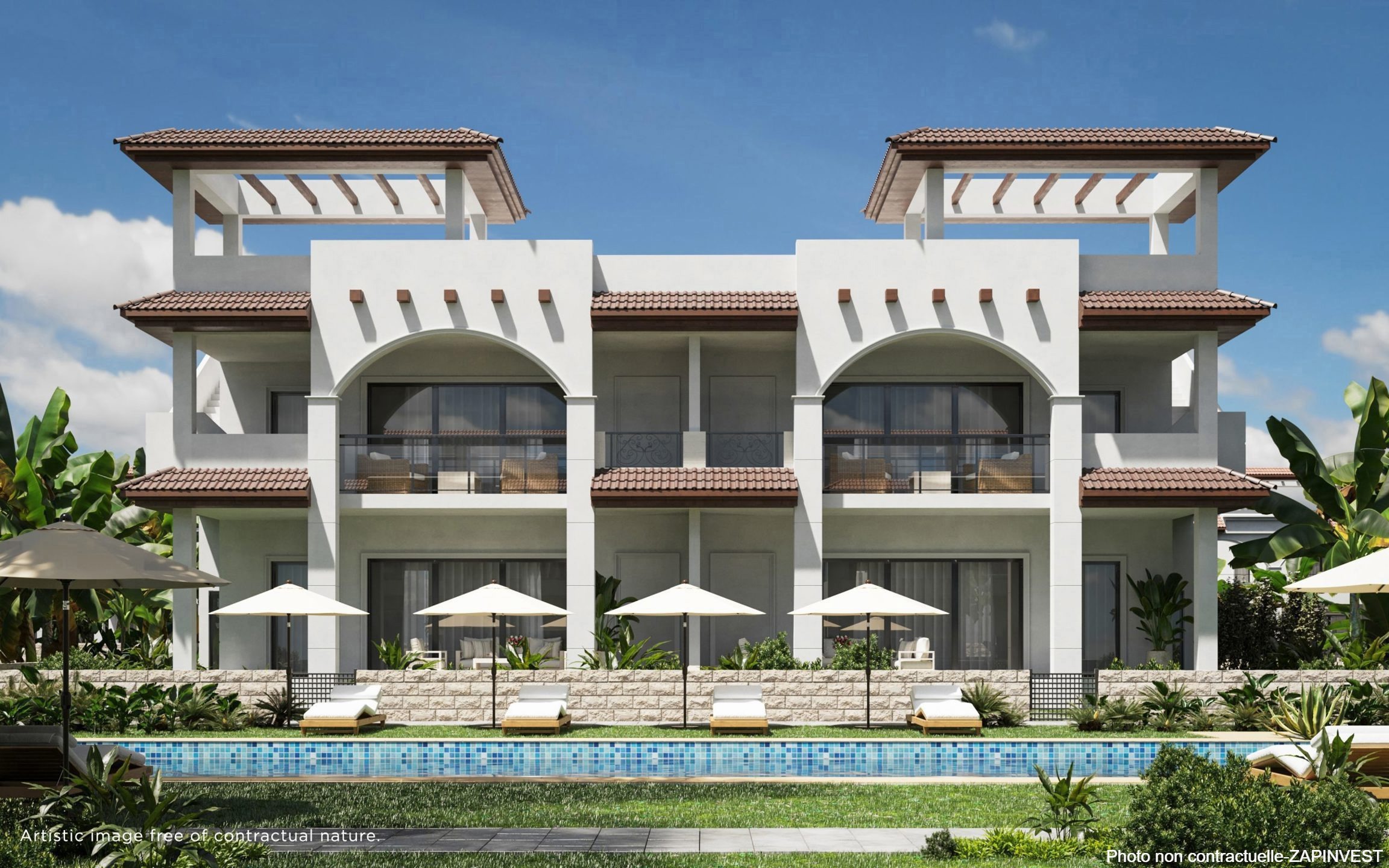 Il est construit dans un complexe résidentiel enviable car il est proche des commerces, des hôpitaux, des aéroports, et offre différentes activités de loisirs.