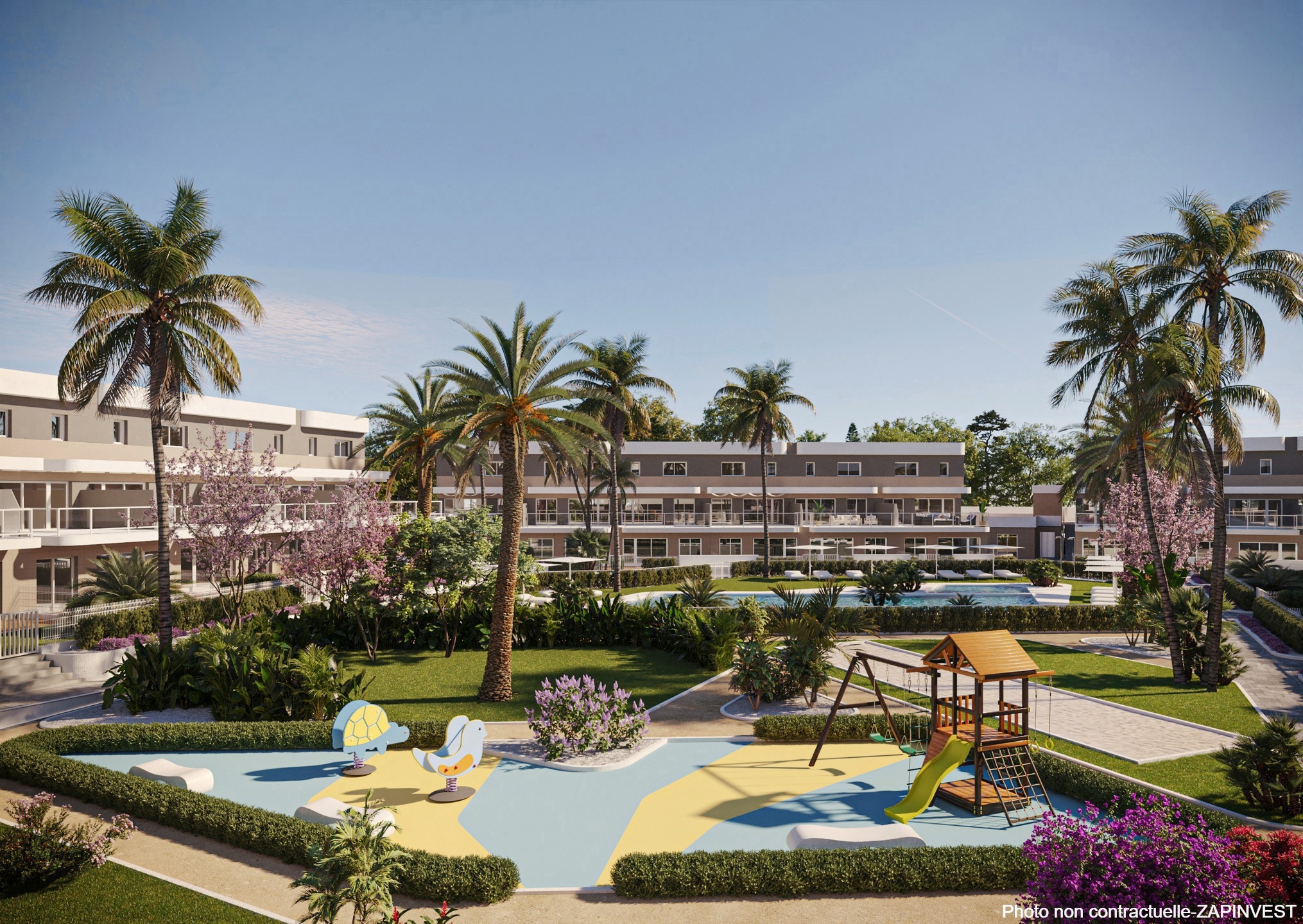Il se compose de d'un premier séjour avec une cuisine ouverte sur un très grand salon de 35 m donnant sur une splendide terrasse de 38 m2 donnant sur la piscine commune et ses zones vertes et infantiles.