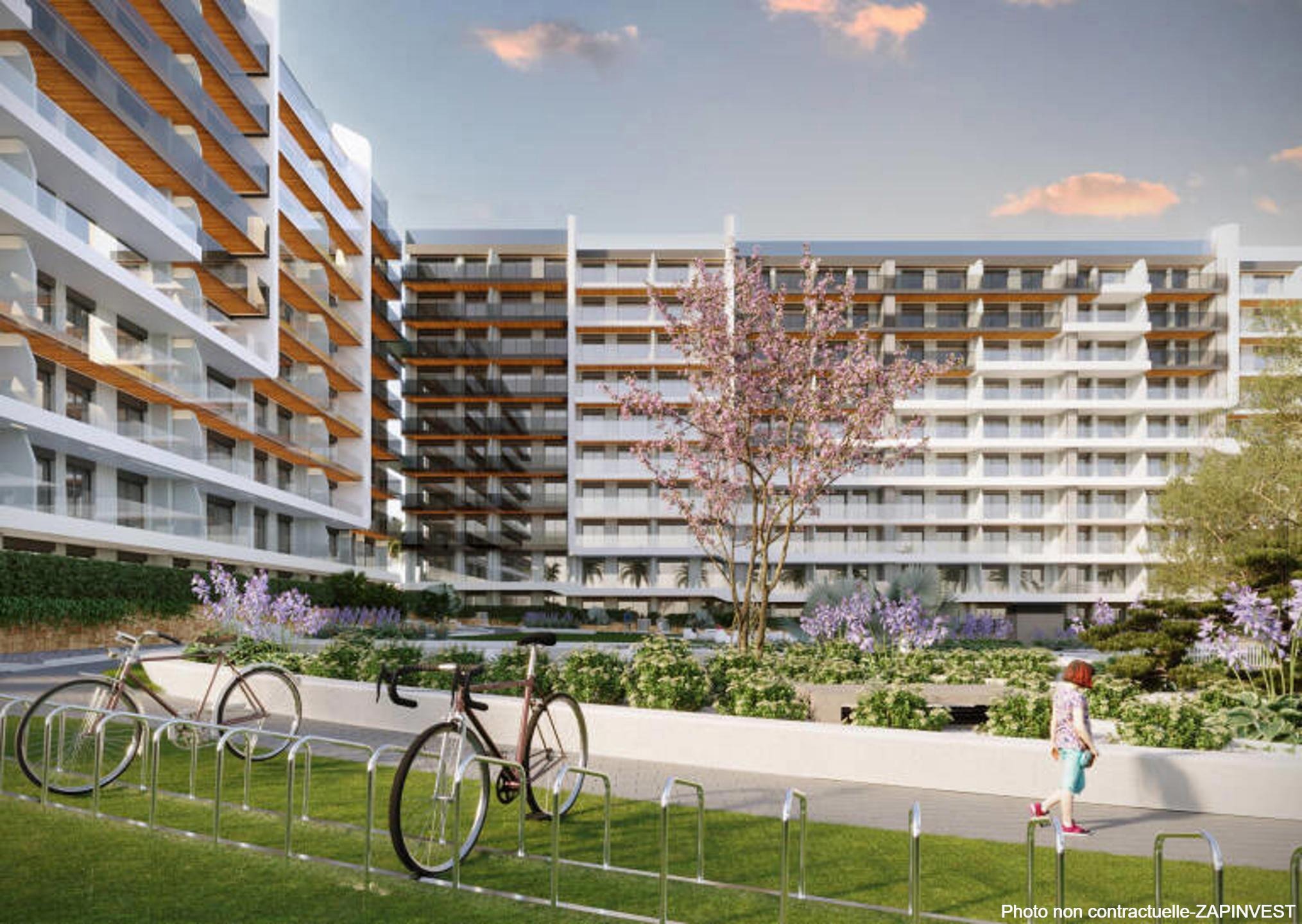 Appartements de 2 ou 3 chambres vendus avec tous les extras : cuisine totalement équipée, air conditionné et chauffage avec aérothermie, place de parking avec pré-installation pour la recharge électrique, cave et un parking pour vélos.