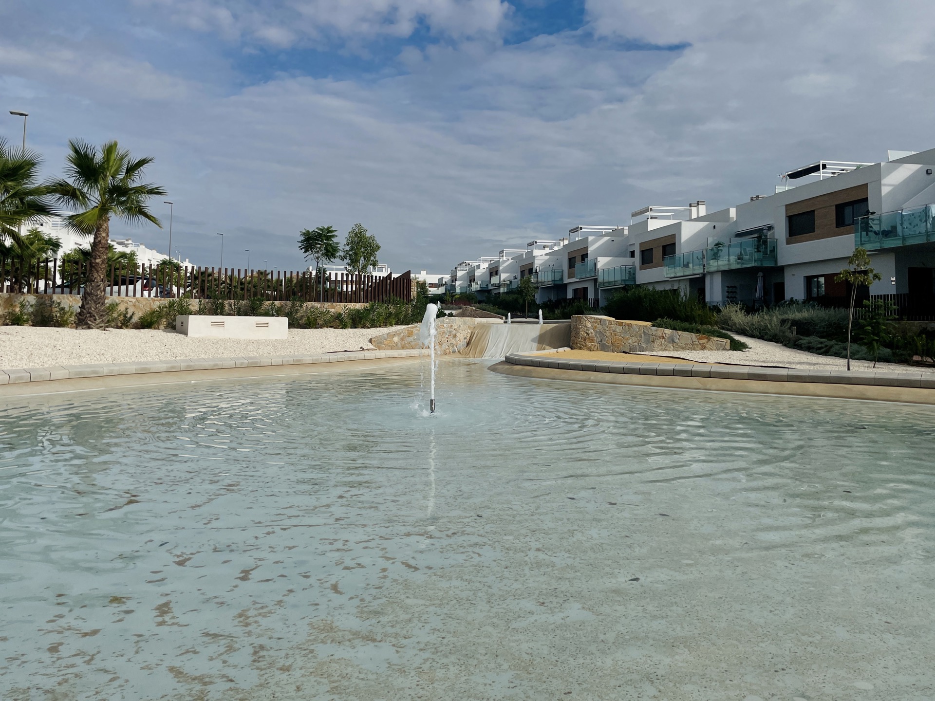 Une des principales particularités de ce complexe sont ses zones communes, particulièrement grandes, vertes et aérées, composées de très grands jardins avec plan d'eau, de chemins de promenades, d'équipements extérieurs et d'une splendide piscine commune entourée de pelouse et de parasols.