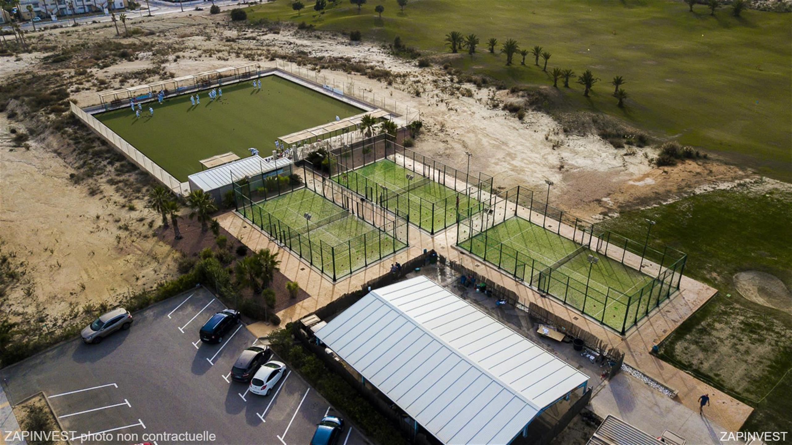 Le complexe est situé dans une urbanisation golfique très agréable à vivre disposant de toutes les infrastructures et les commerces nécessaires (supermarché, bar, restaurants, pharmacie,...), le tout accessible à pied.