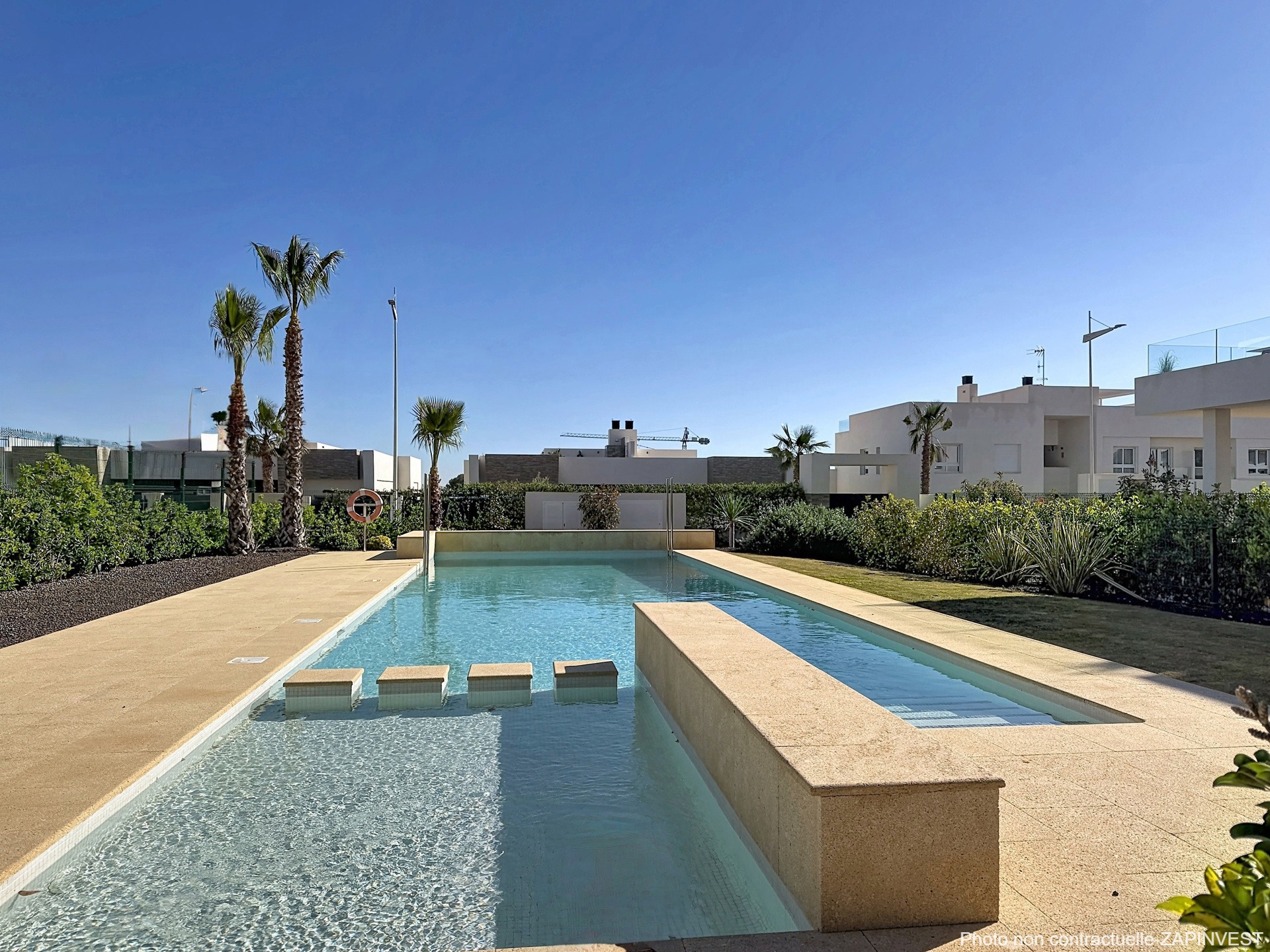 La piscine commune est à quelques mètres tout en étant retiré des éventuels inconvénients liés à la baignade.