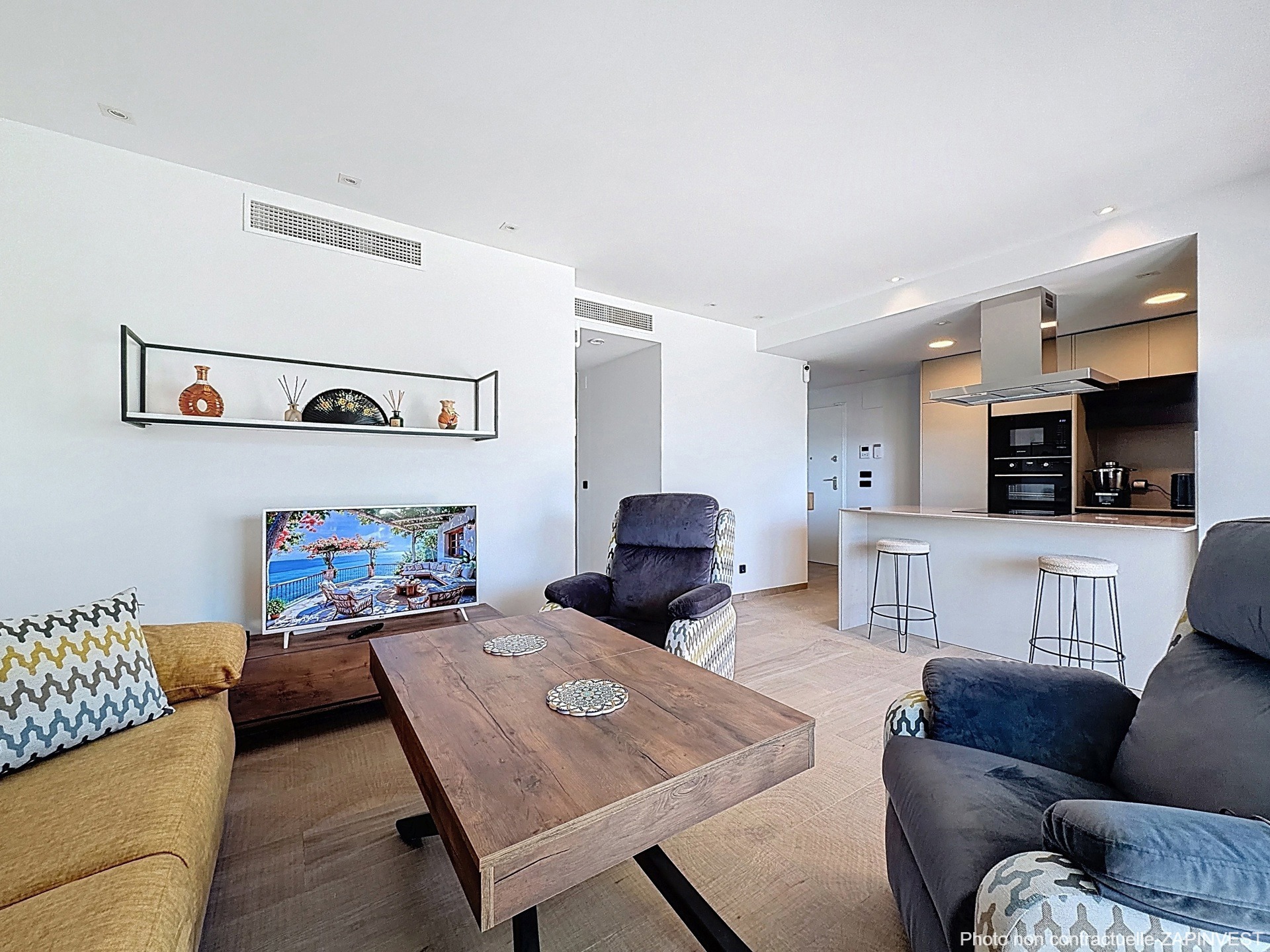 Ce splendide bien est vendu avec des meubles intérieurs et extérieurs de qualité, avec une magnifique cuisine équipée ouverte (avec tous les électroménagers), 2 salles de bain complètes avec chauffage au sol, volets électriques, ainsi que la climatisation dans toutes les pièces.