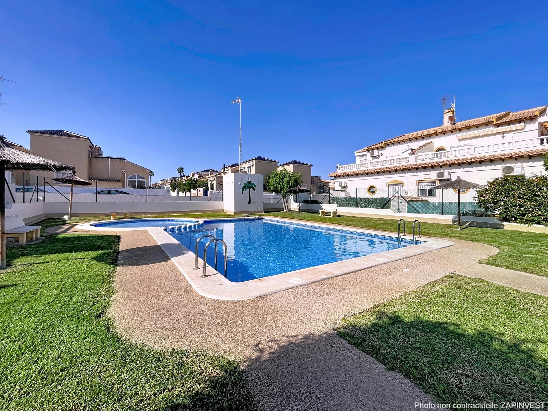 Jolie petite maison jumelée de 2 chambres et 2 salles de bain avec piscine commune et à 5 minutes de la plage de Punta Prima.