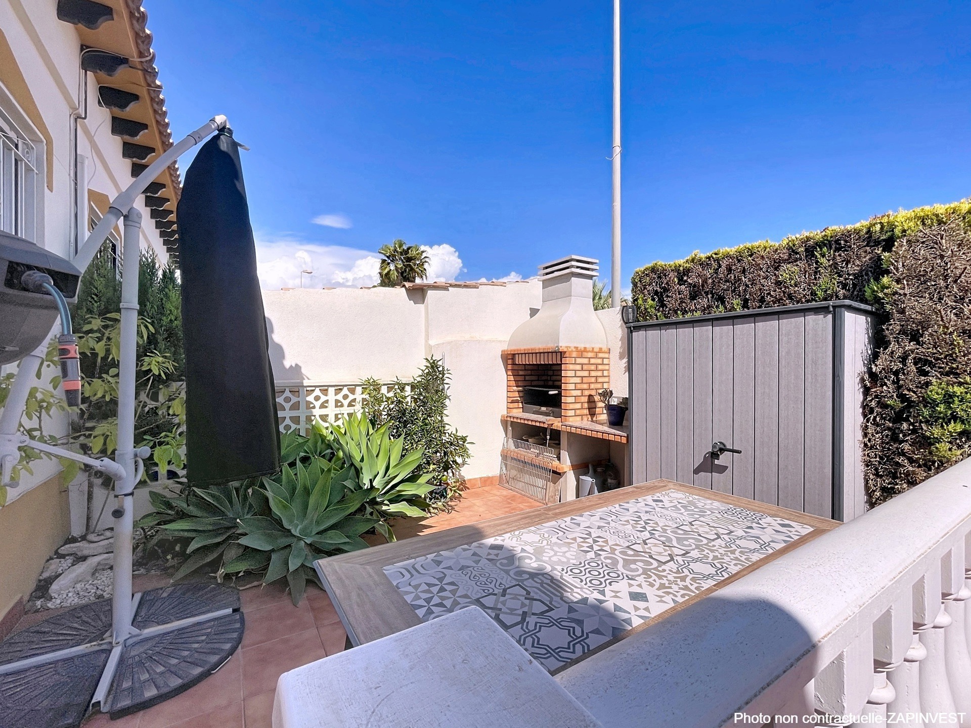 Elle possède un grand jardin avec une zone barbecue ainsi qu’une place de parking sur la parcelle et belle terrasse orientée plein sud.