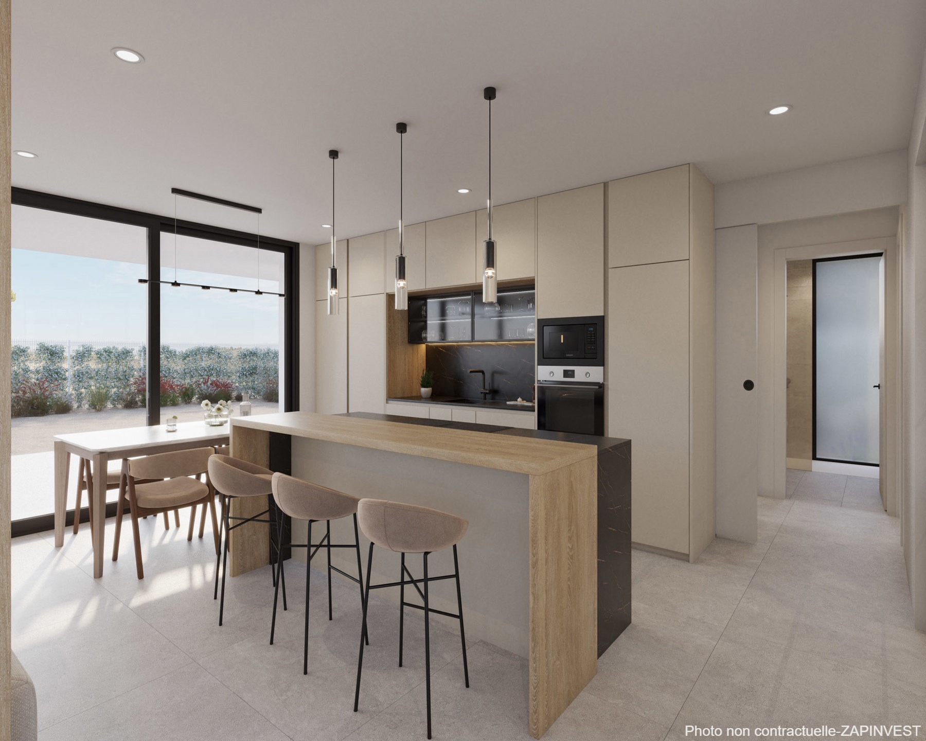 Inclus dans le prix : Électroménagers de la cuisine : réfrigérateur intégré, plaque induction, four, micro-ondes, hôte et lave-vaisselle intégrés, cave à vin, pré-installation de la climatisation par conduits dans le séjour et les chambres, parois de douche dans les salles de bain, eau chaude sanitaire par aérothermie, piscine privée.