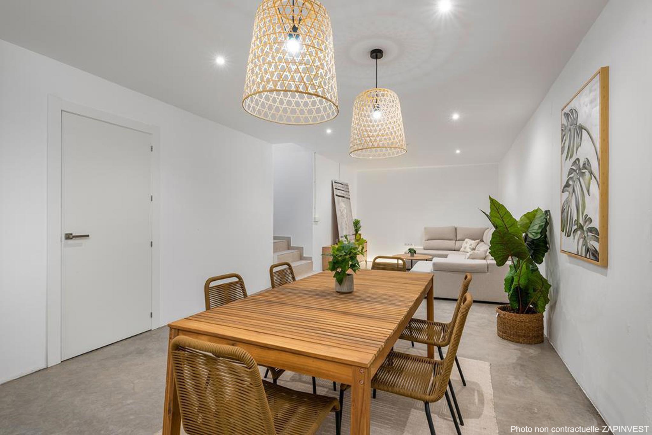 Le salon-salle à manger dispose de grandes fenêtres avec accès à la terrasse.