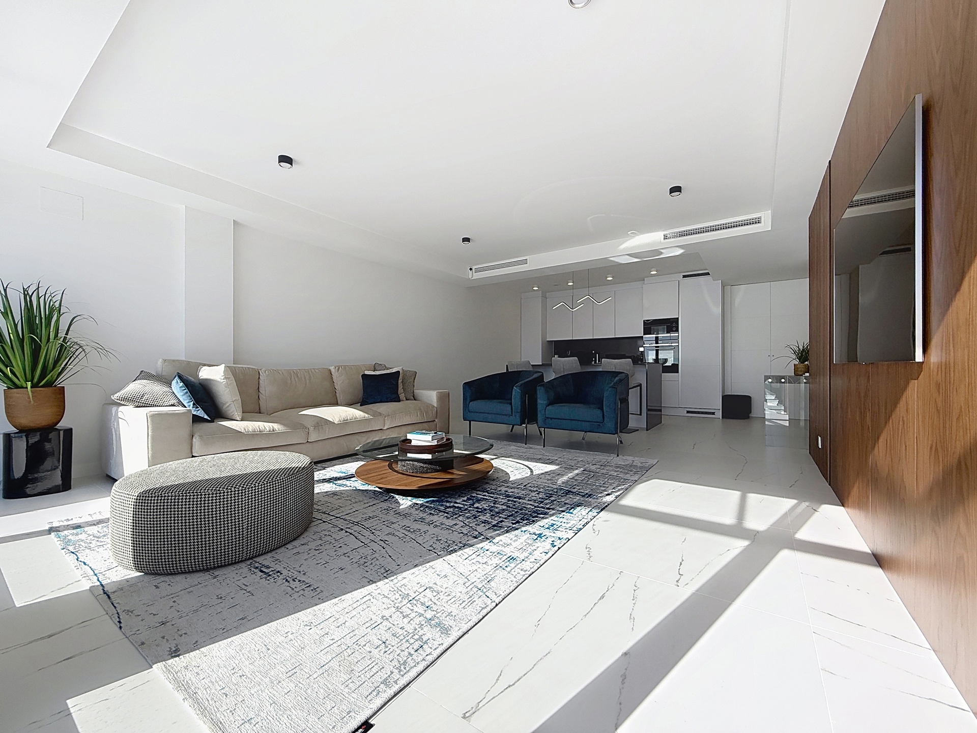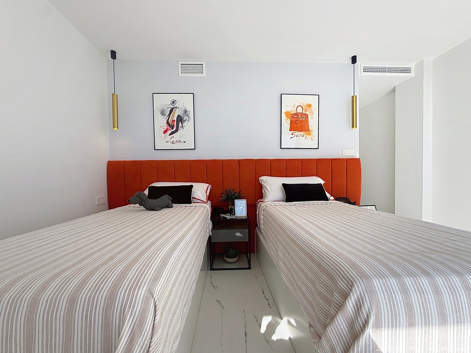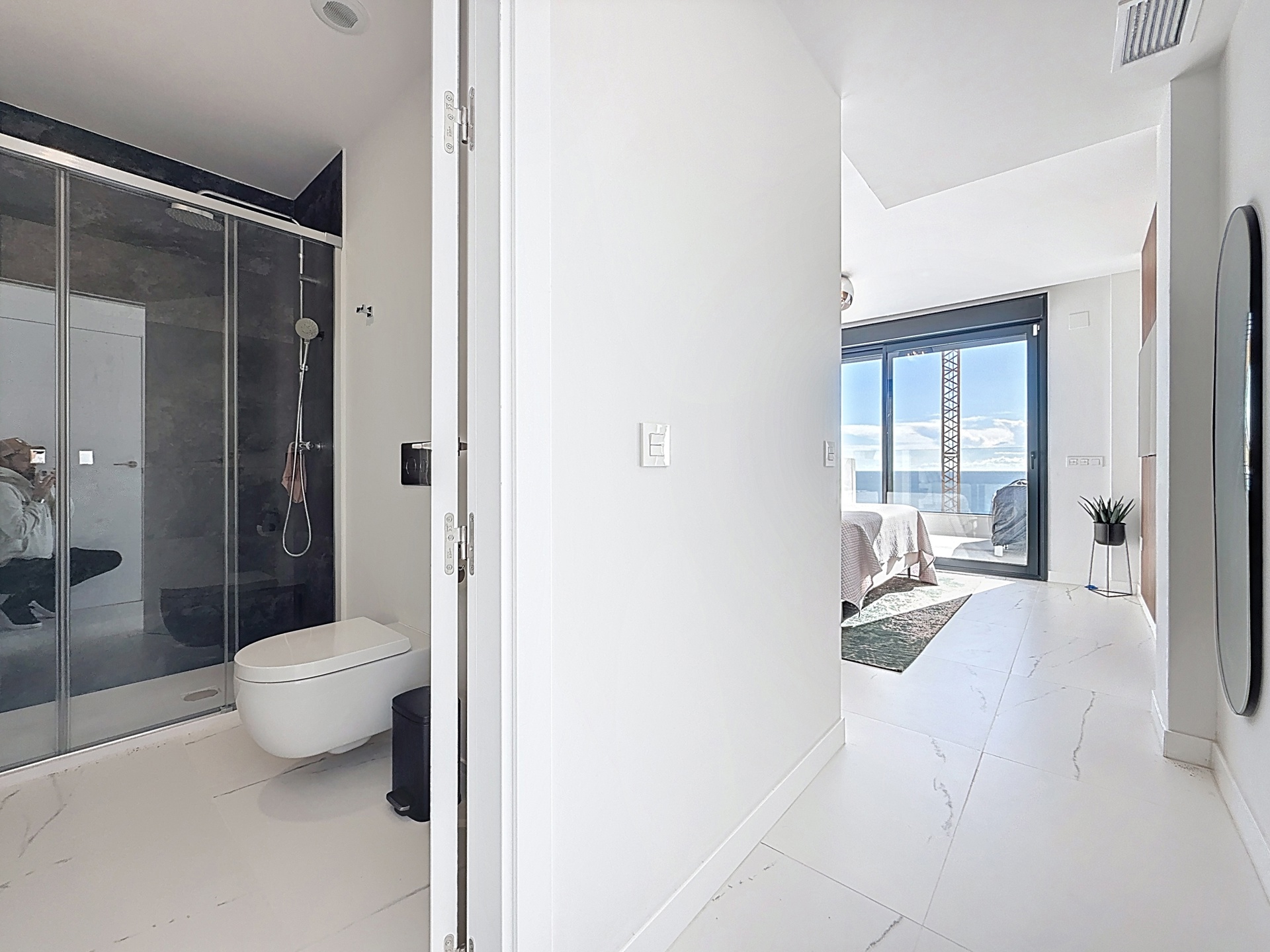Implanté au sein d’une petite urbanisation contemporaine au design moderne, cet appartement de 2 chambres et 2 salles de bain en suite offre un cadre de vie privilégié, entre confort, intimité et panorama mer à couper le souffle. Situé sur une légère colline, il bénéficie d’une position dominante qui maximise les vues tout en restant à seulement 800 mètres de la plage.