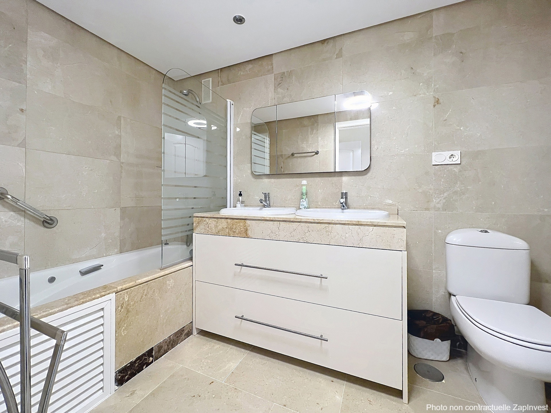 Vendu entièrement meublé, il dispose également de la climatisation, d’une large place de parking et d’une cave située au niveau -1 du parking souterrain.
