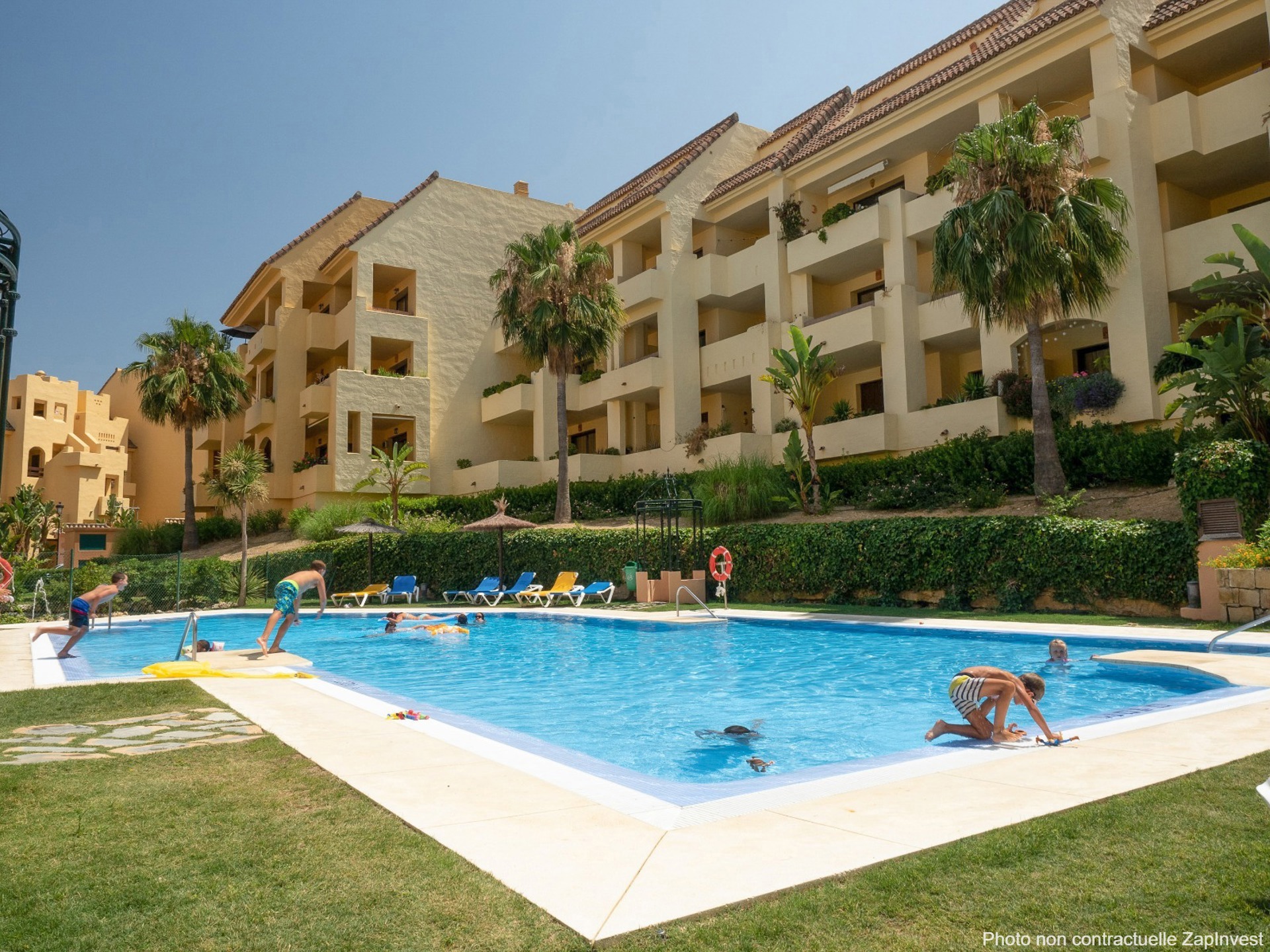 Situé sur les hauteurs de La Duquesa, à proximité de son charmant port de plaisance, cet appartement se trouve au sein d’une belle résidence privée et sécurisée 24h/24, offrant un environnement calme et agréable. La résidence dispose de magnifiques jardins tropicaux parfaitement entretenus, de cinq superbes piscines ainsi que d’un terrain de tennis-padel, idéal pour profiter pleinement du climat privilégié de la Costa del Sol.