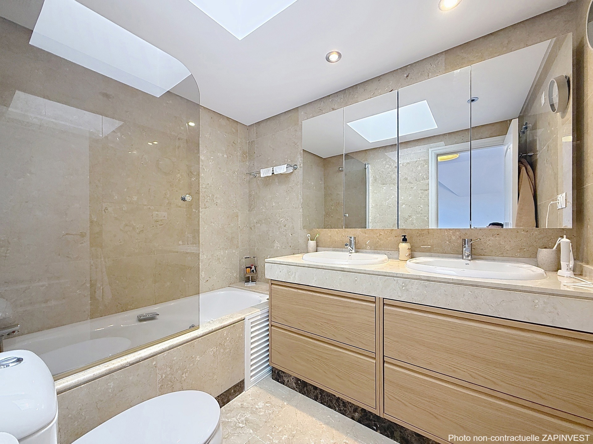 L’espace nuit propose trois chambres, chacune disposant de sa propre terrasse généreuse et de superbes vues mer et montagnes. Deux chambres bénéficient de salles de bains attenantes, et l’une d’elles offre en complément un dressing, pour un confort au quotidien et une vraie logique “suite”.