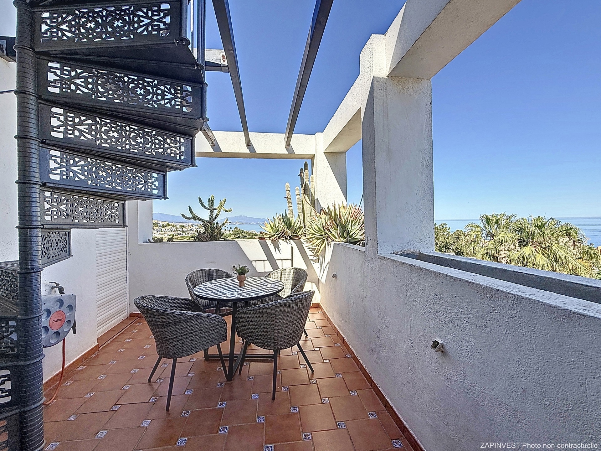 Les environs proches vous offrent plusieurs Golfs clubs réputés et en 15min vous pouvez rejoindre le centre-ville d'Estepona et ses jolies ruelles piétonnes blanches et fleuries typiquement andalouses.