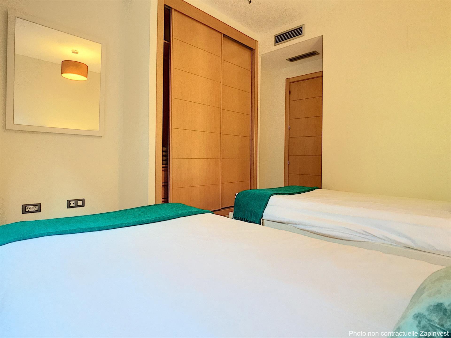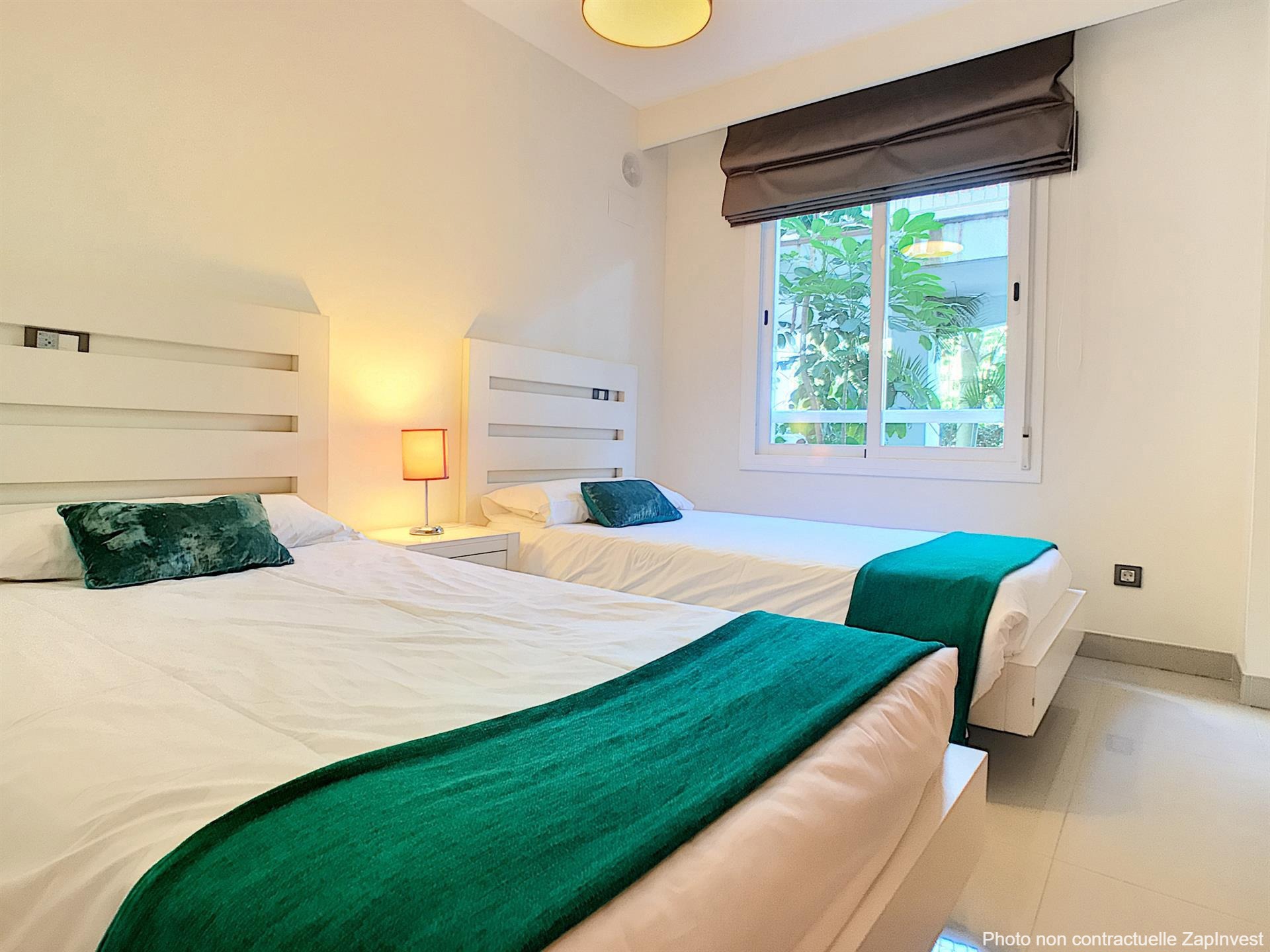 L’appartement se compose de deux chambres spacieuses et de deux salles de bain, dont une en suite. Vous serez séduit par son vaste et lumineux séjour ouvrant sur une belle terrasse de 32 m², prolongée par un jardin privatif de 28 m², soigneusement entretenu par le jardinier de la copropriété.