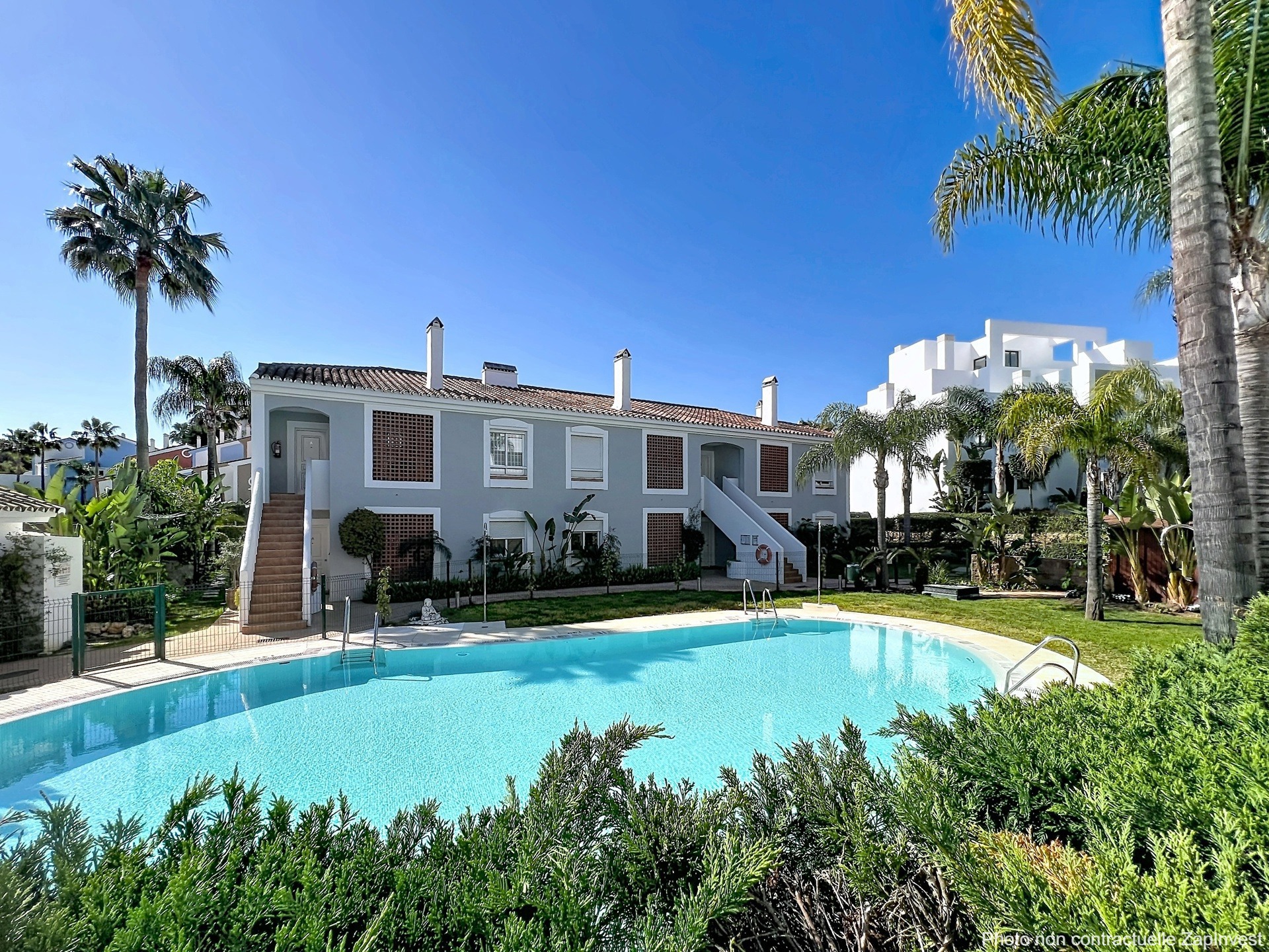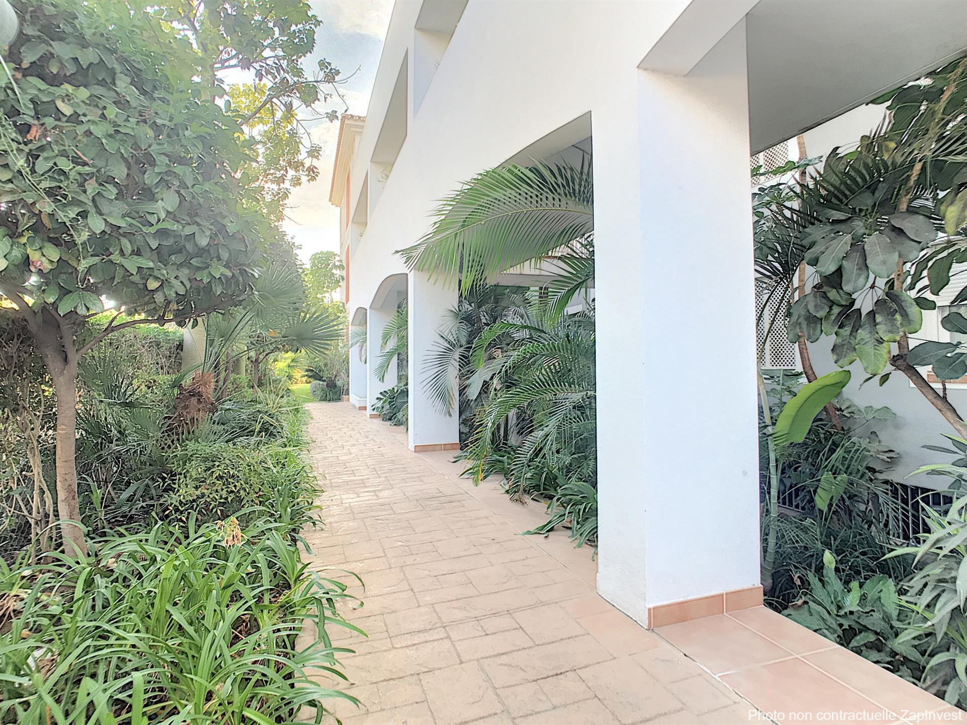 Cette résidence d’exception est privée et sécurisée 24h/24 avec service de conciergerie, elle se distingue par son charme andalou, son environnement paisible et ses magnifiques espaces verts agrémentés de palmiers et de végétation tropicale. Une grande piscine vient compléter ce cadre idyllique.