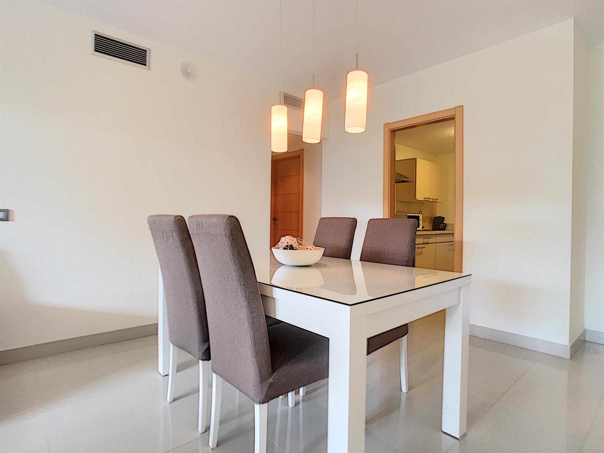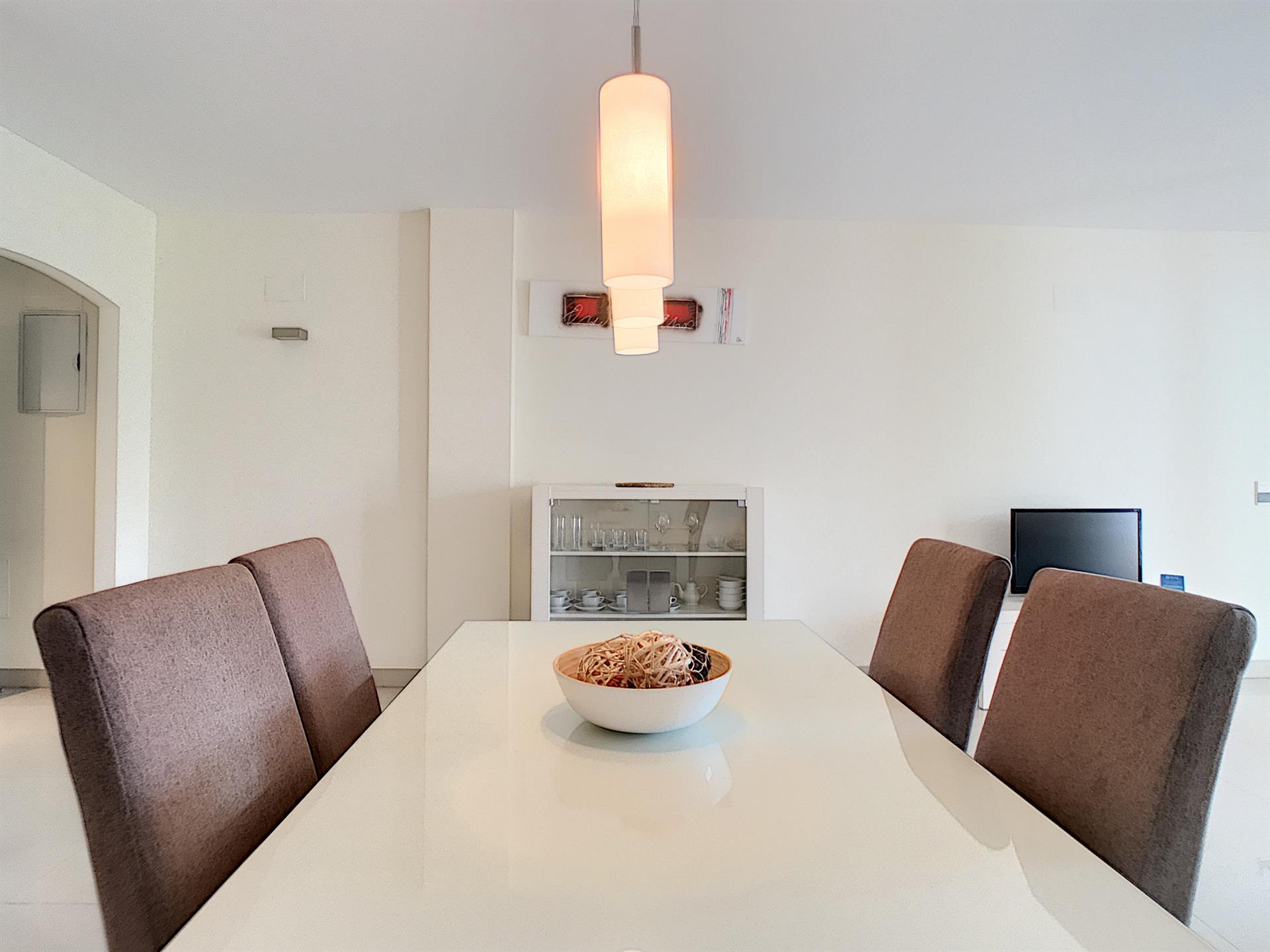 La cuisine, entièrement aménagée et équipée, propose des matériaux et des électroménagers de qualité, alliant fonctionnalité et modernité.