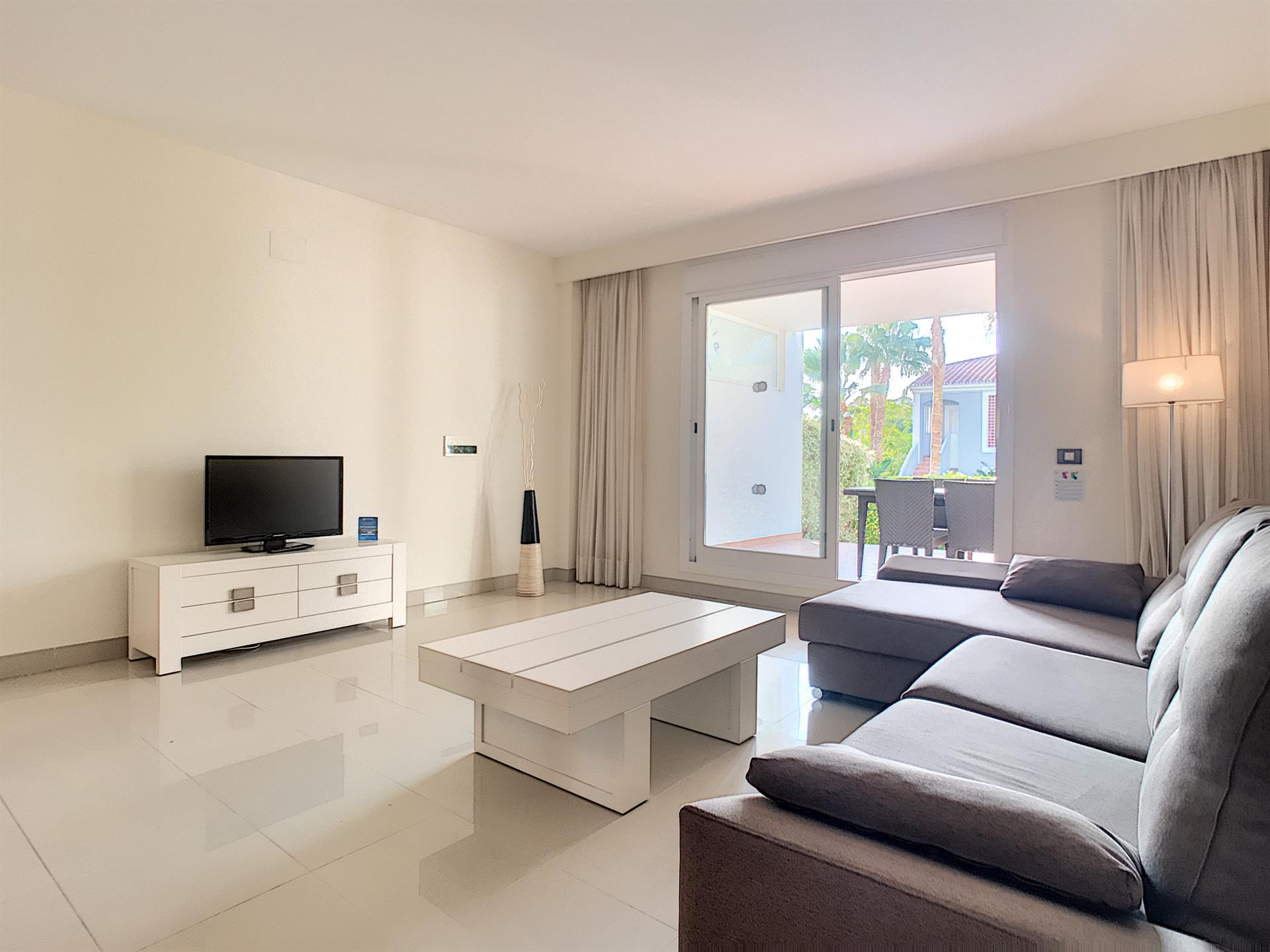 Idéalement situé entre Estepona et Marbella, à proximité de la plage et d’un golf, ce superbe appartement au rez-de-chaussée offre un cadre de vie privilégié, alliant confort, calme et élégance.