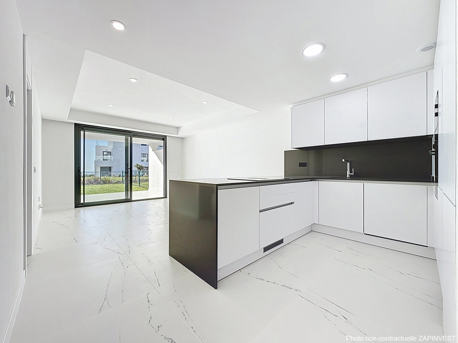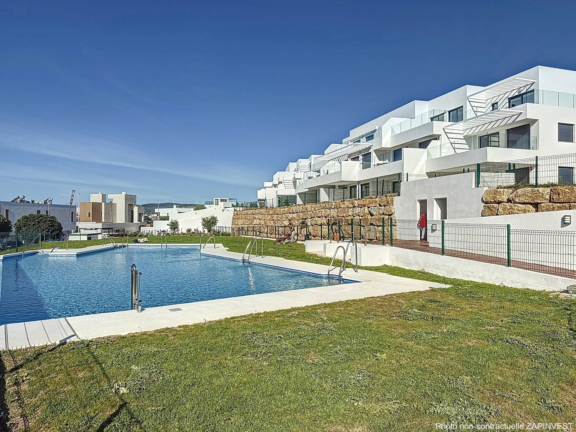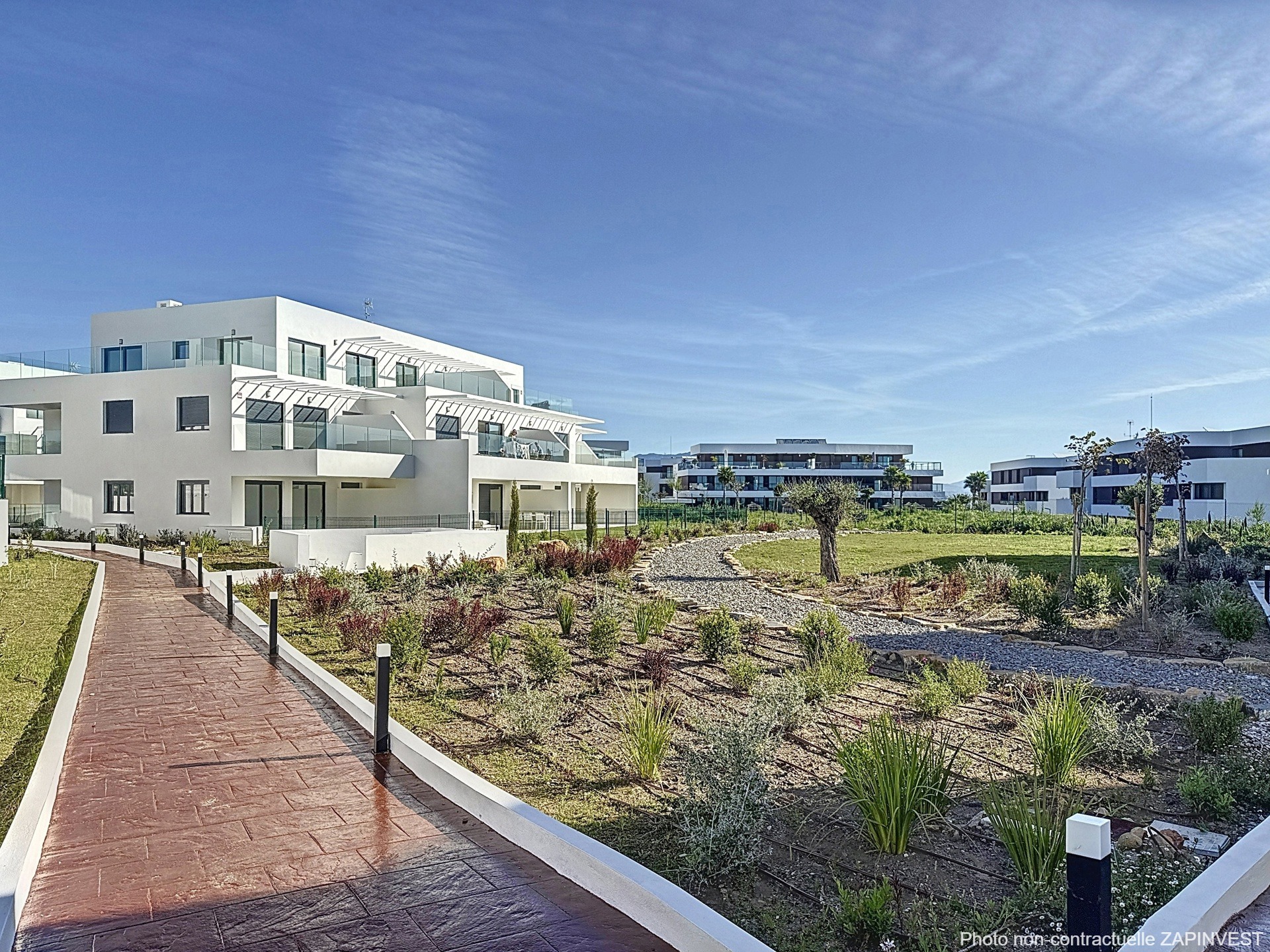 La résidence est intégrée dans des zones communes entourées d'espaces verts, 1 grande piscine à débordement ainsi qu'une salle ''co-working'' et un gymnase.