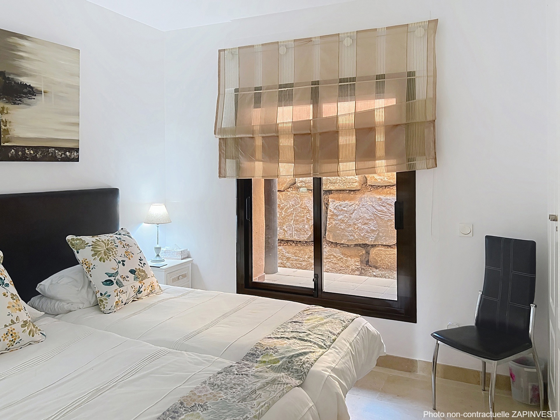 L’appartement dispose de deux grandes chambres, dont une suite parentale avec salle de bain.