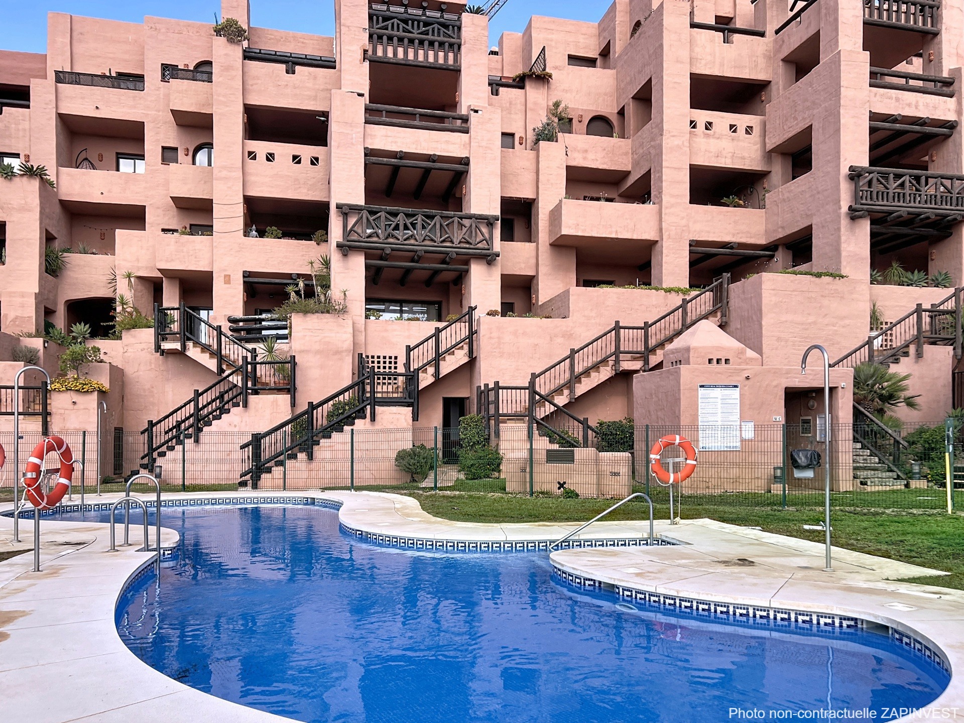 La résidence privée, au style andalou plein de charme, comprend quatre grandes piscines entourées de jardins paysagers et de pataugeoires pour enfants.
