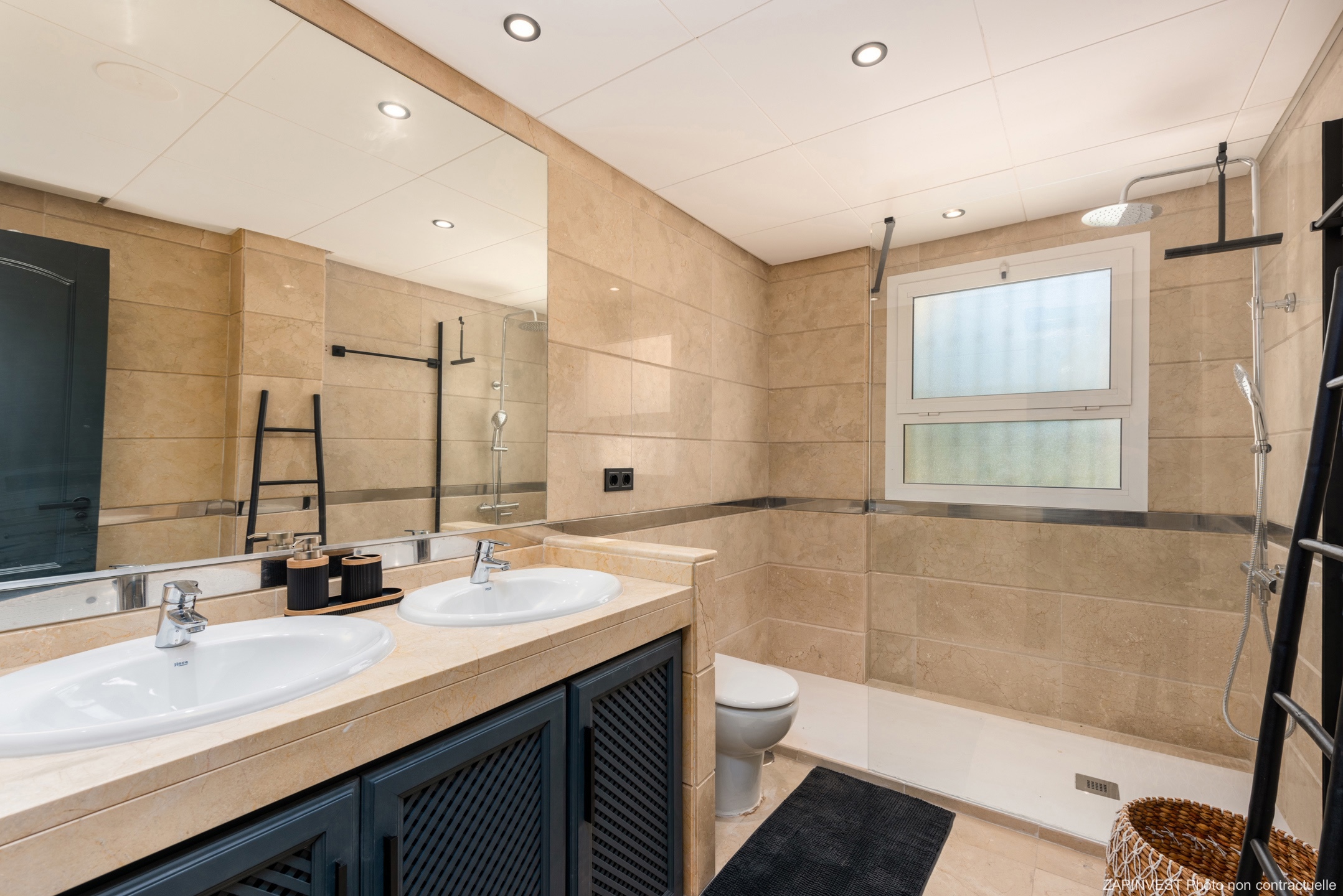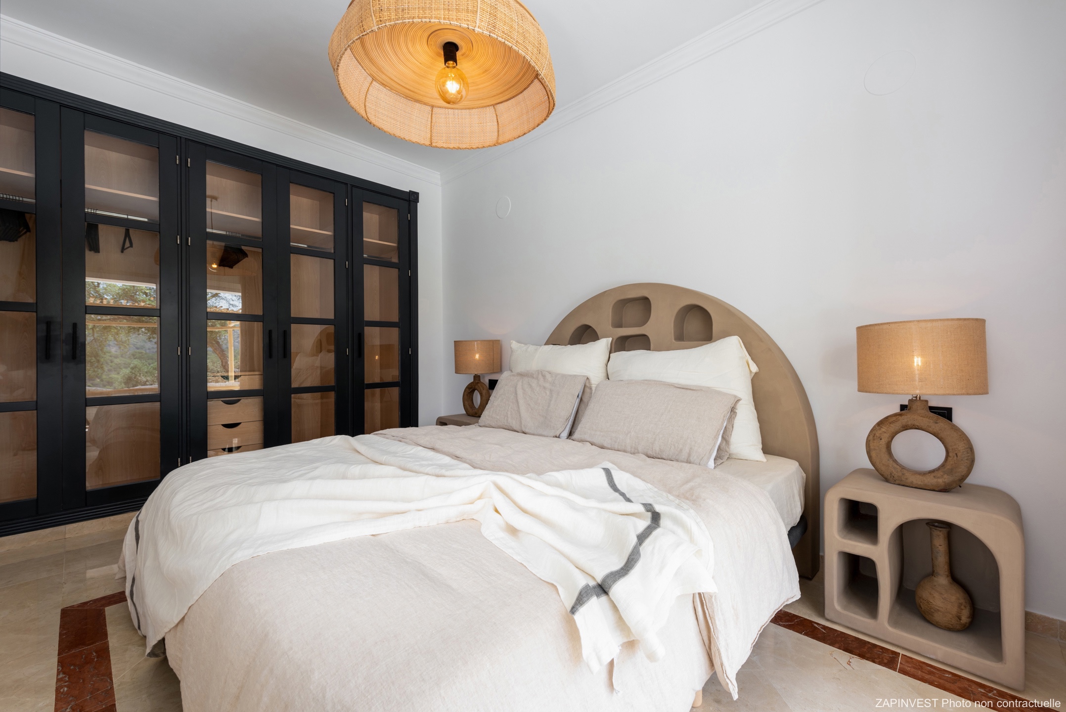 Ce superbe appartement de 176m² de trois chambres et deux salles de bains + une toilette privative, fait partie d'une splendide résidence au style andalou.