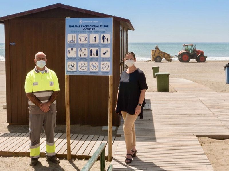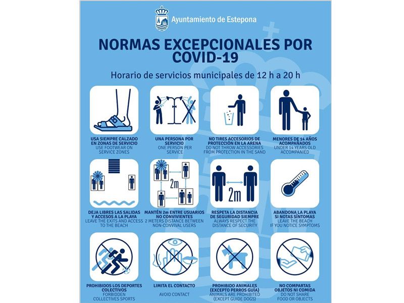 La communauté Andalouse, par exemple, fait preuve de proactivité et prévoit un budget pour l'engagement de 3000 auxiliaires de plage supplémentaires pour la saison estivale. Mais les actions se mettent en place à tous les niveaux ! Certaines communes, comme Malaga, élaborent un réel programme de surveillance en utilisant des drônes, d'autres optent pour la mise en place de quelques règles supplémentaires et d'une campagne d'affichage, comme ici à Estepona, où la commune à limité les heures de fréquentation des plages entre 12h et 20h... en comptant aussi sur le bon sens collectif.