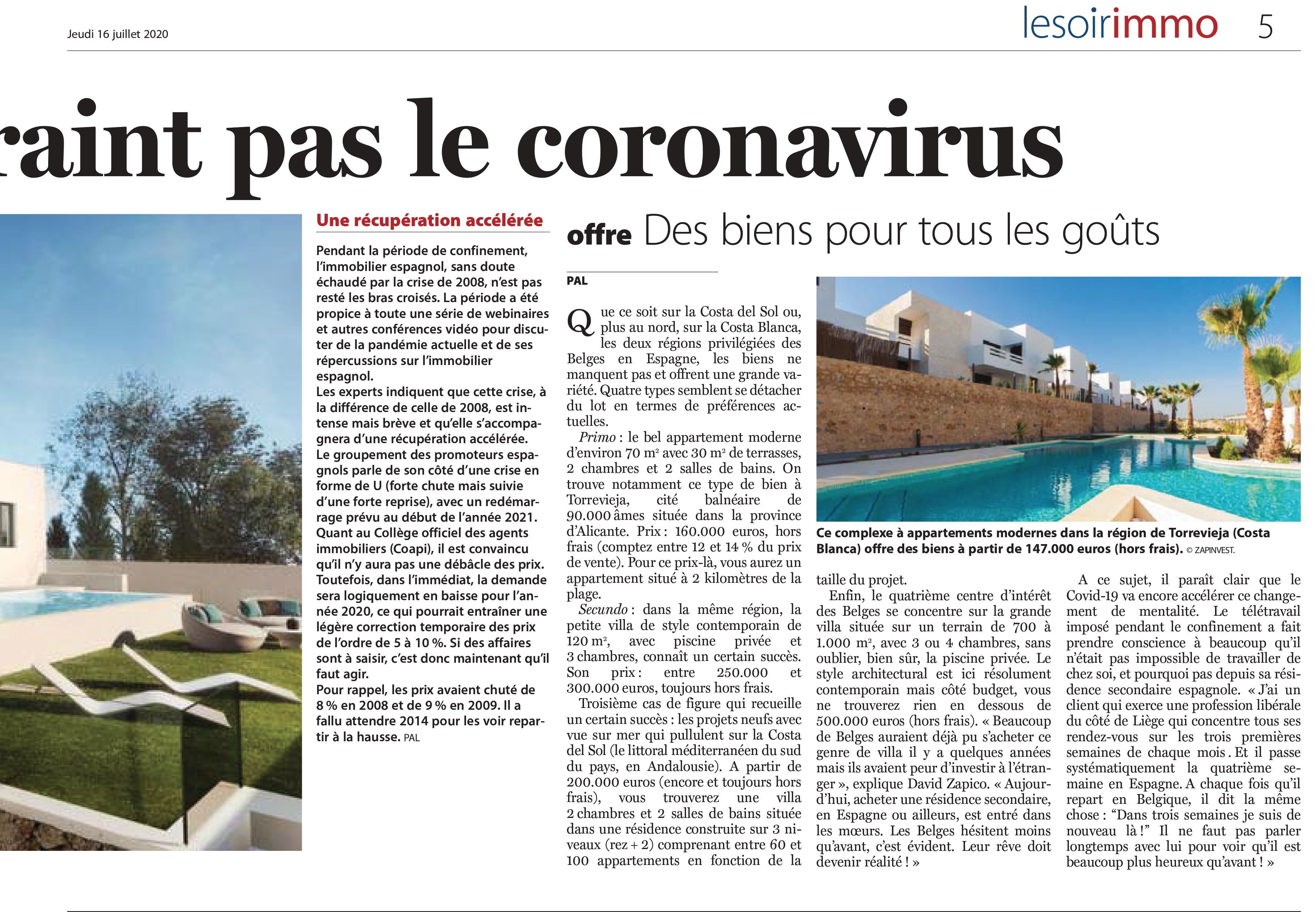 Cet article paru dans "LeSoirimmo" du 16/07/2020 vous explique en quoi la situation actuelle du marché immobilier en Espagne, liée à la crise du Covid-19, est bien différente que la situation liée à la crise économique de 2008