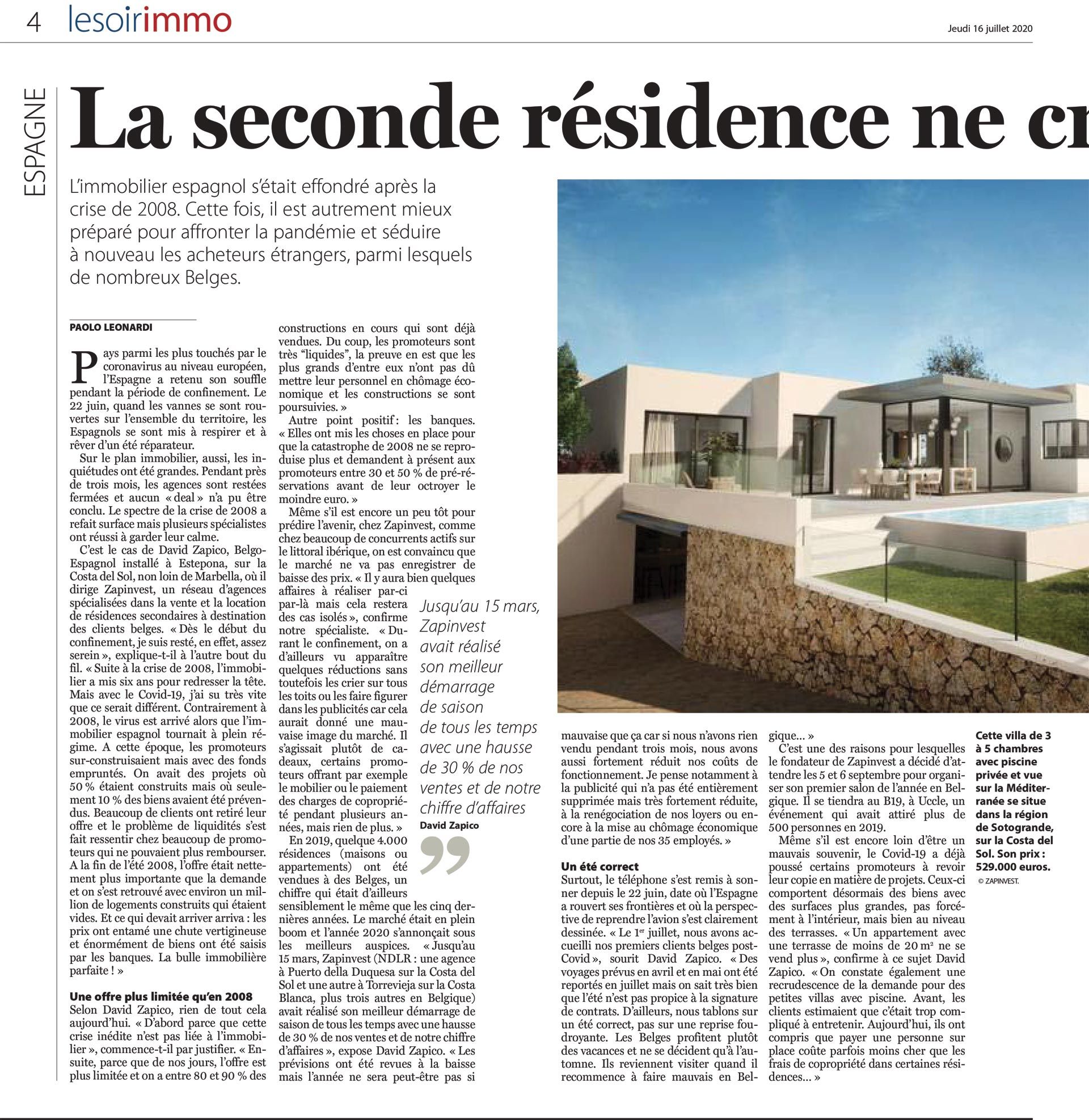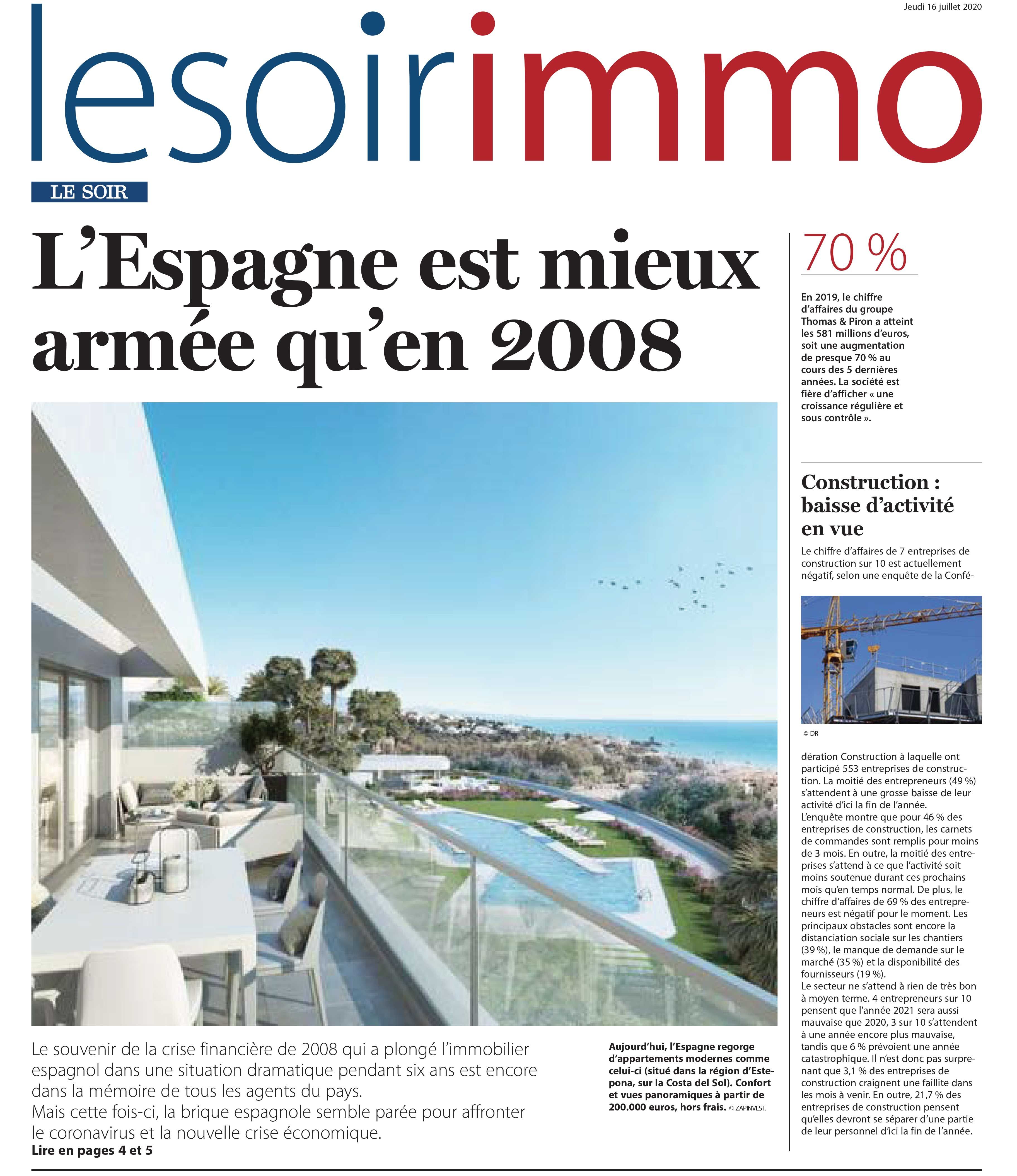 Article "Le Soir IMMO" du 16 Juillet 2020