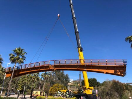 Cette belle passerelle piétonnière en bois de 30 mètres de long et 2,40 mètres de large, sur le lit de l'Arroyo de la Jordana fait partie d’un projet global, de la province de Malaga, de chemin côtier continu sur tout le littoral. Il ne restera plus qu’un dernier pont, sur l’Arroyo Parrilla, pour assurer la dernière communication et rendre ainsi la circulation piétonne continue tout au long de la côte. Le projet et les budgets sont actuellement en cours de validation au ministère de l’environnement et la Junta de Andalucia.
