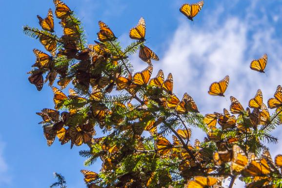 Les papillons Monarques (Danaus plexipus), une espèce autochtone du Mexique a trouvé refuge en Espagne grâce au climat et à l’alimentation  nécessaire à sa survie.