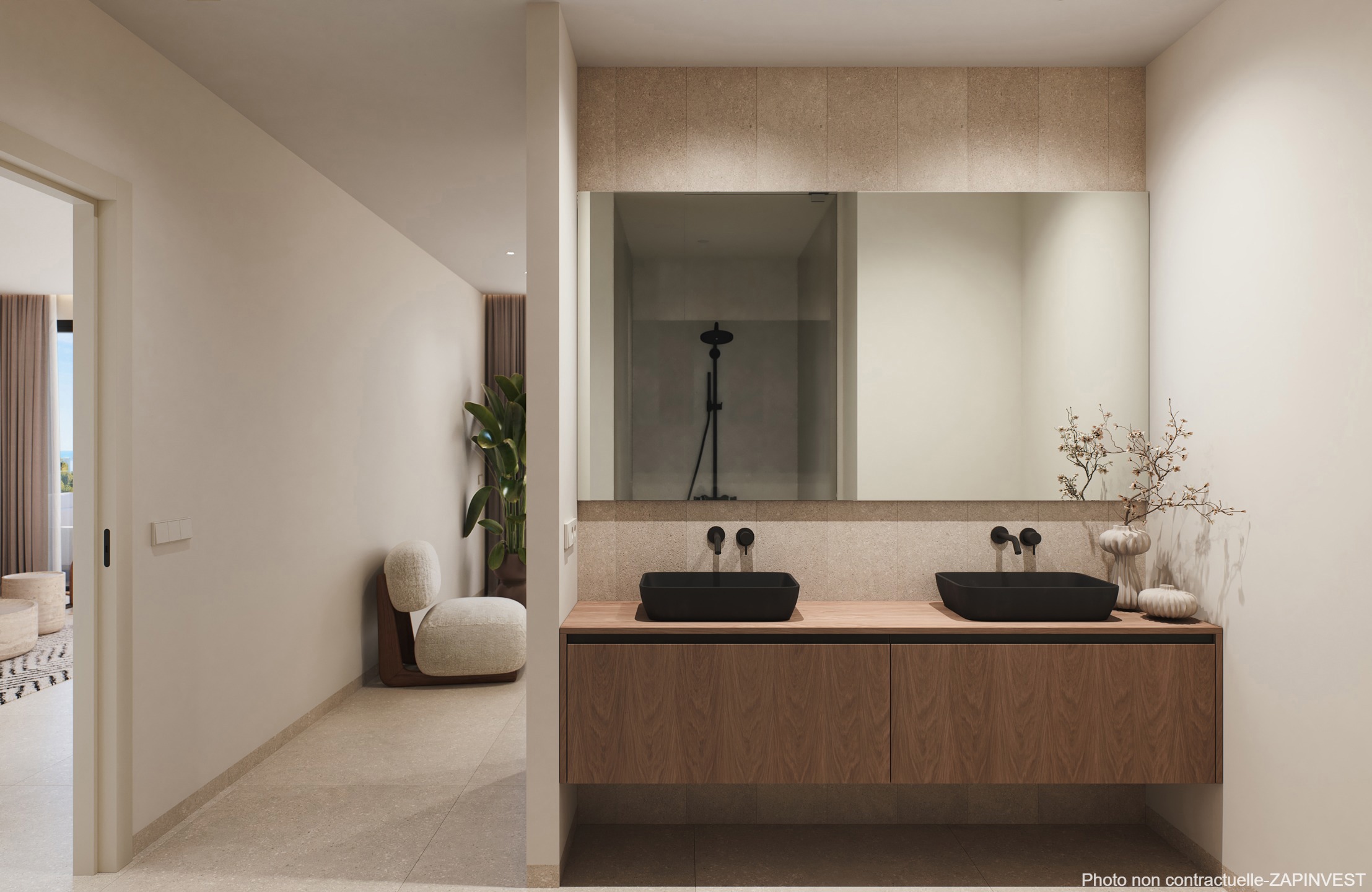 Le design intérieur a été méticuleusement étudié, en combinant les matériaux, les couleurs de manière optimale avec la lumière comme protagoniste depuis le salon spacieux, s’ouvrant sur sa grande terrasse de 71 m2 et son jardin privé de 118 m2 donnant sur la piscine commune avec des vues spectaculaires.