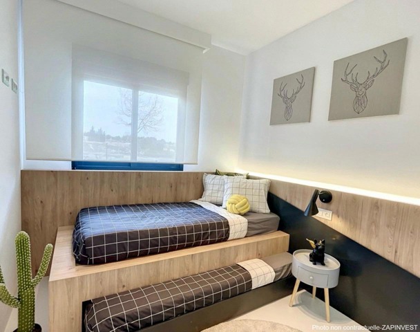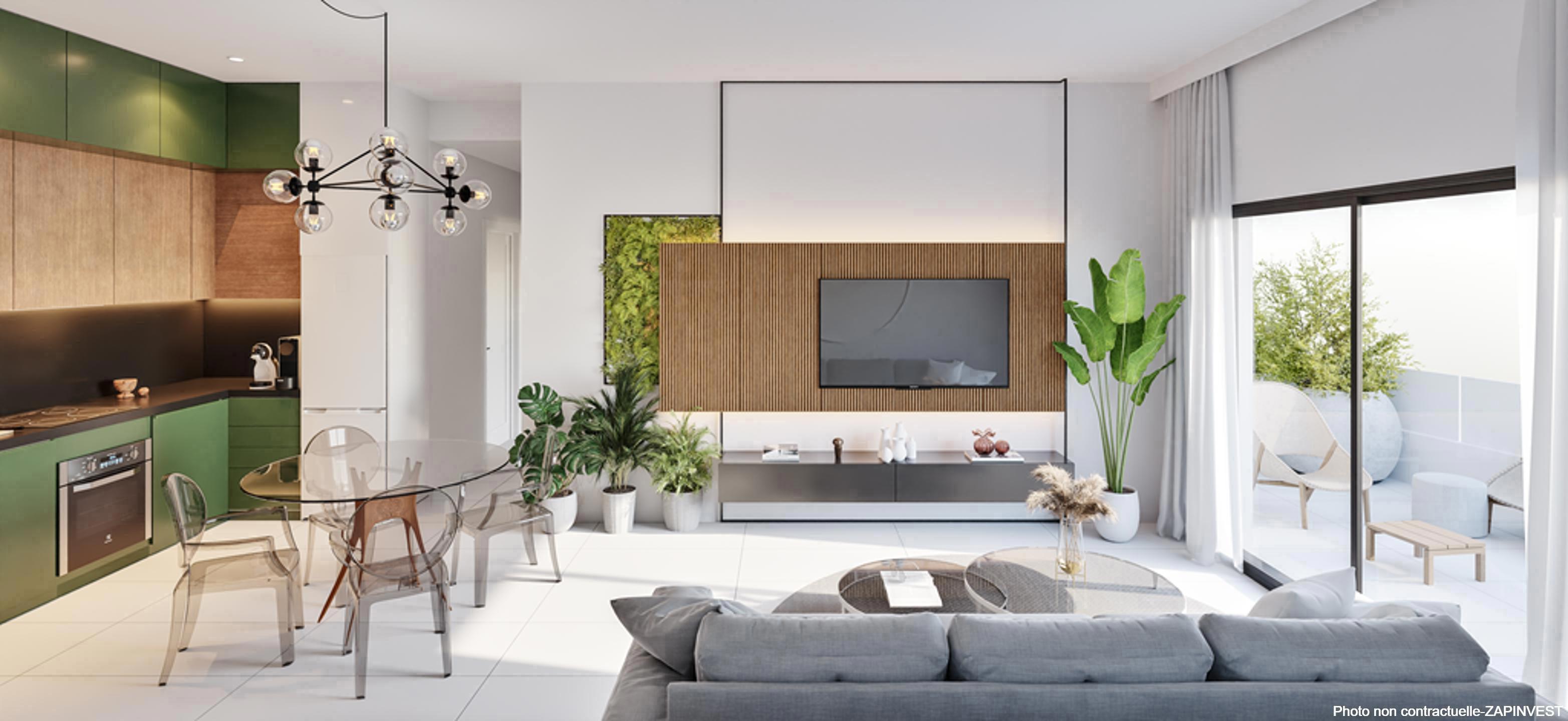 Composés de 2 chambres et 2 salles de bain, leur design offre un espace ample et lumineux de vie cuisine/salon donnant sur une très belle terrasse couverte de 26m2.
