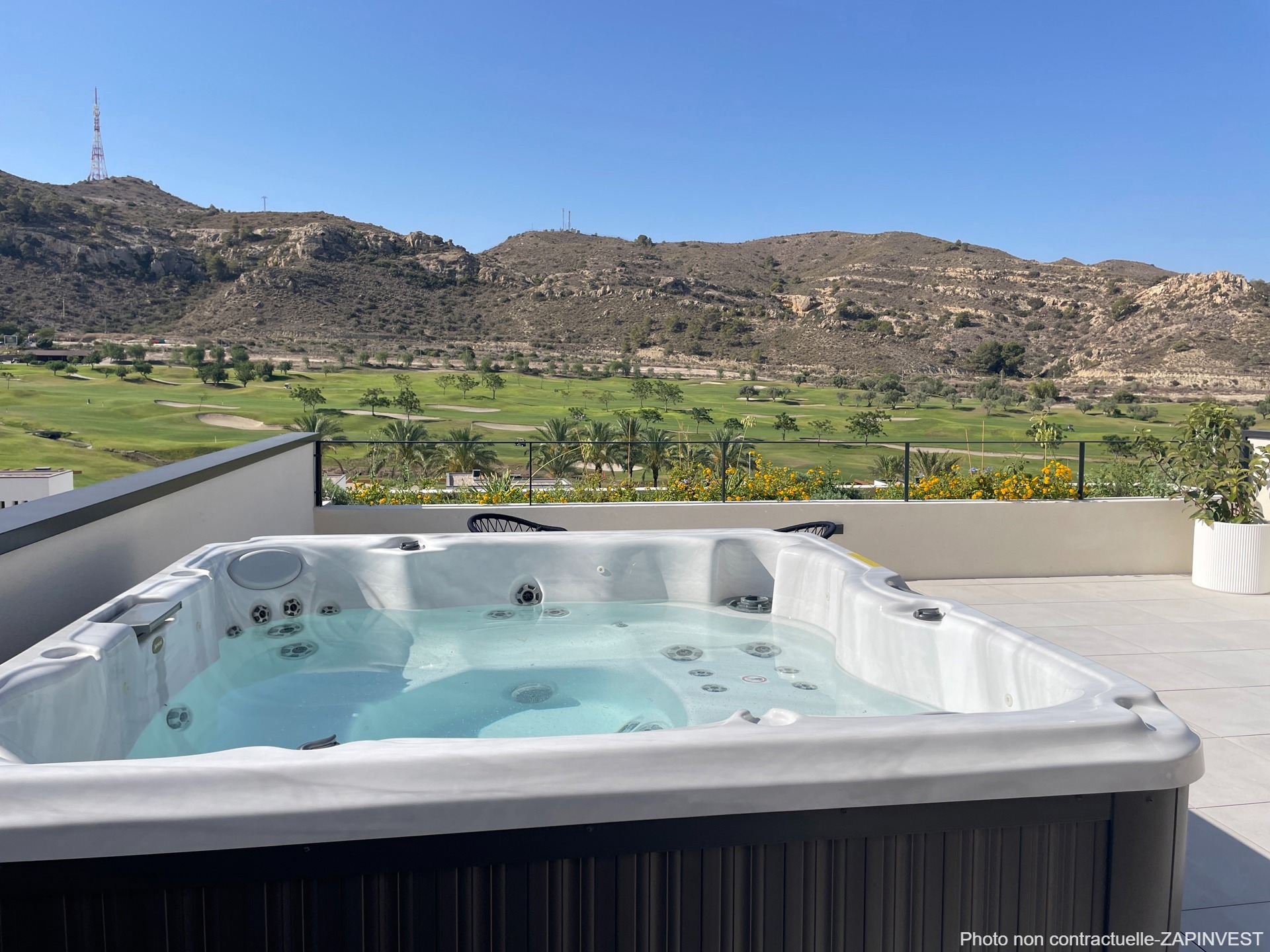 Le bien se situe à Aspe, dans la région d'Alicante, sur un golf disposant d'un Club House et d'un restaurant. Vous pourrez profiter des plages de sable fin de la région à seulement 20 minutes. La région de Aspe est très facilement accesible depuis l'aéroport et les principaux axes routiers grâce à sa proximité avec Alicante et Elche.
