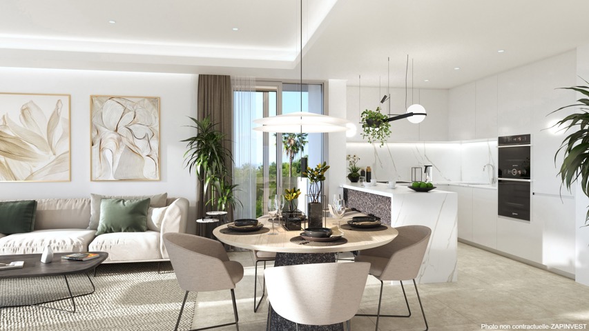 Tout le luxe intégré : cuisine entièrement équipée avec électroménagers, air conditionné, chauffage au sol dans les salles de bain, place de parking et cave.