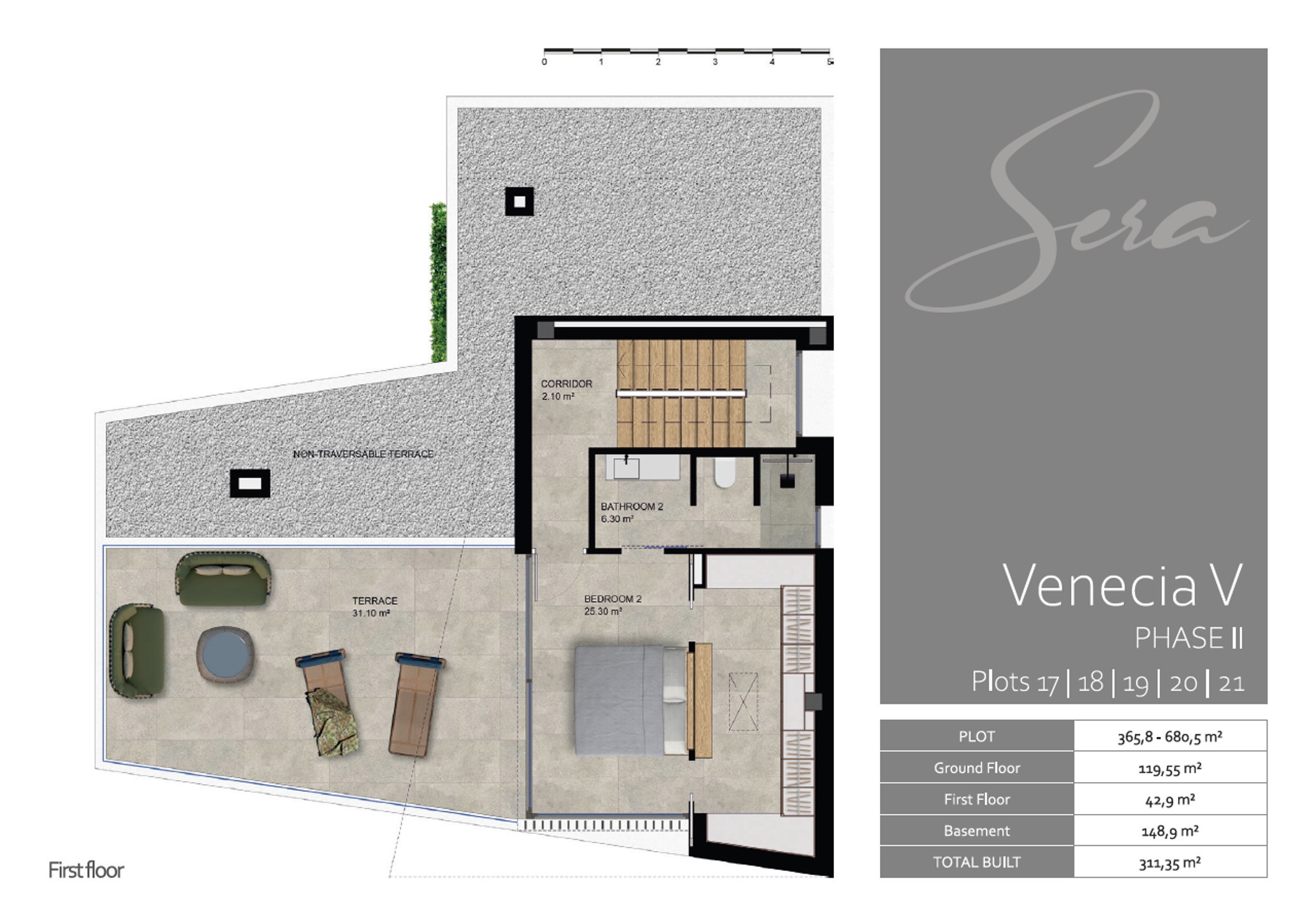 Au premier étage, vous avez accès à une grande chambre suite de 26 m² avec salle de bain privée et dressing ainsi qu’une superbe terrasse privative de 30m avec une vue panoramique afin de profiter de belles soirées et de la beauté des montagnes et de la côte méditerranéenne.