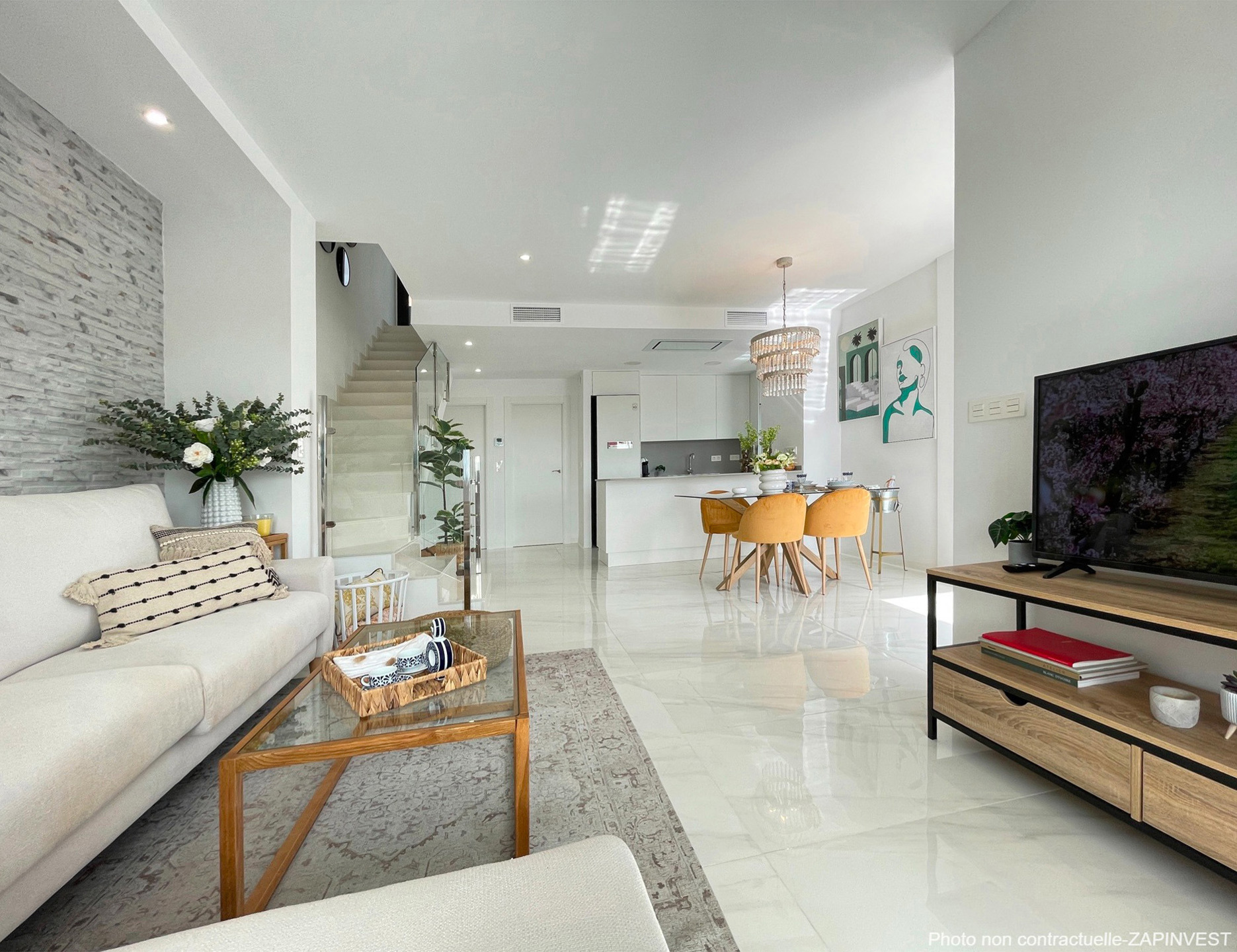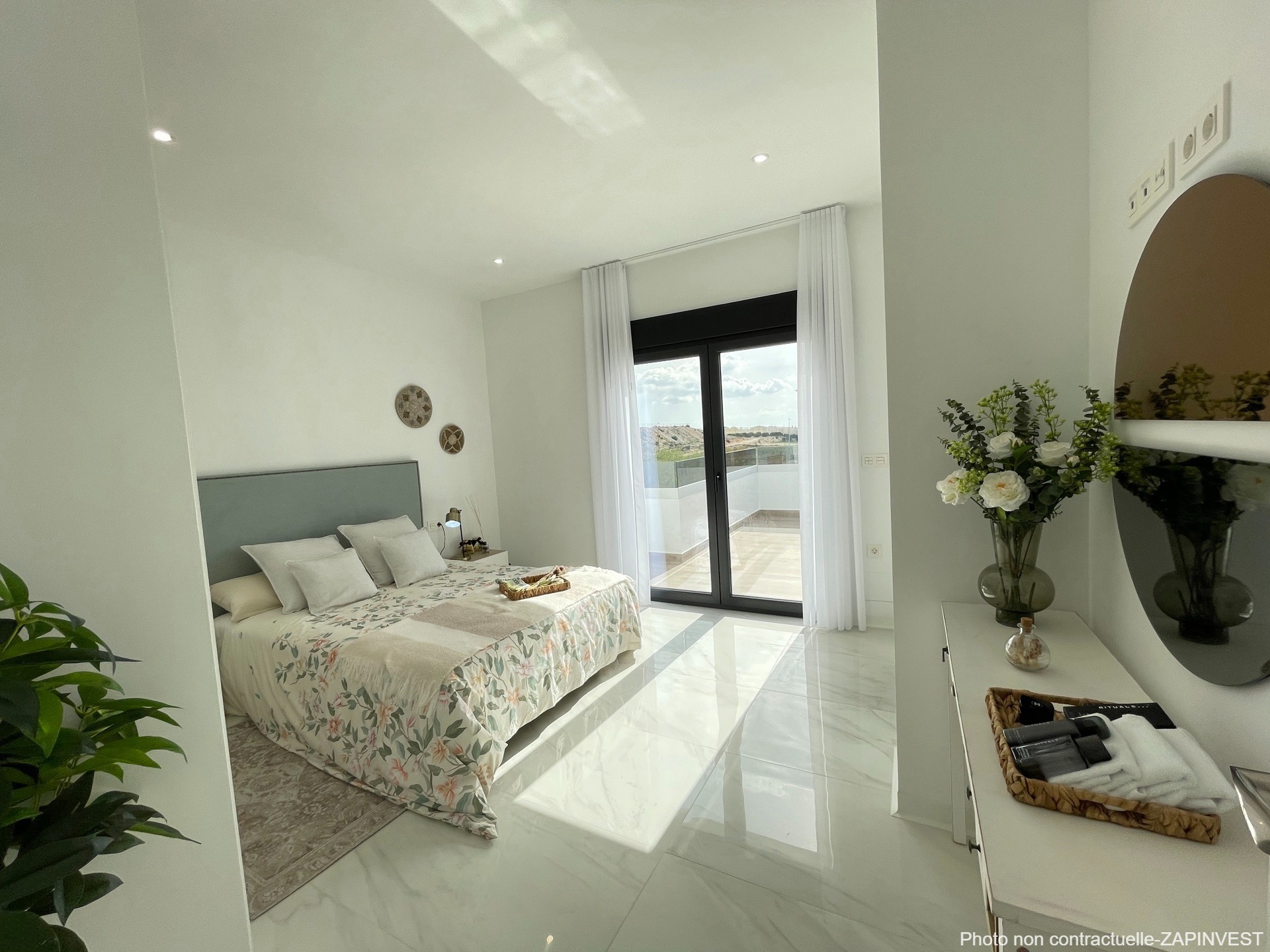 La villa dispose de 3 chambres et de 3 salles de bain ainsi qu'un bel espace de vie avec un grand salon lumineux et une cuisine américaine (tous les électros-ménagers sont inclus dans le prix).