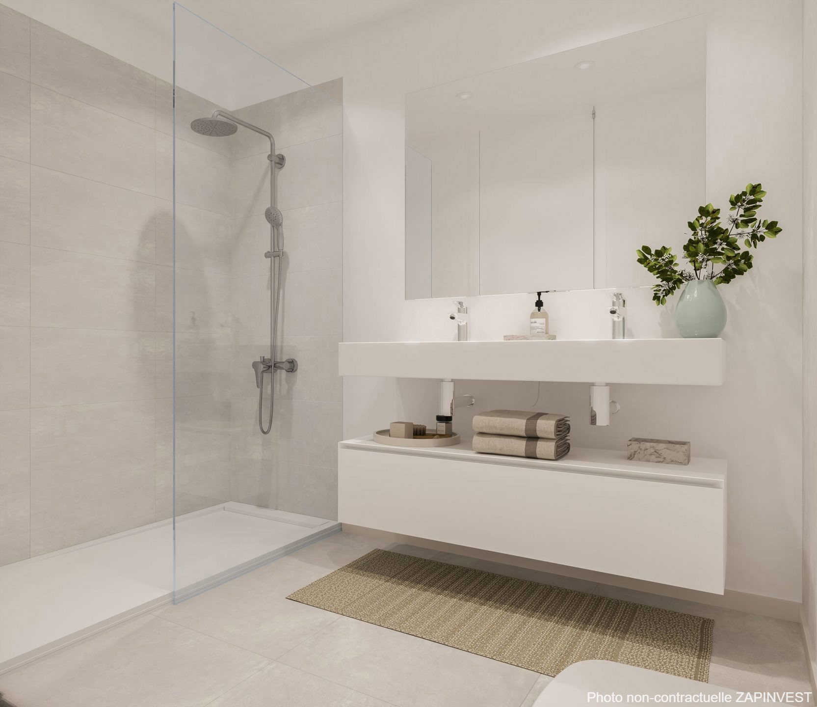 Ce magnifique appartement de 2 chambres et 2 salles de bains se distingue par sa disposition très pratique qui permet de bien séparer l'espace de vie de l'espace de repos. L'espace de vie bénéficie de la cuisine intégrée et son ilot ainsi que du salon et de la salle à manger, le tout donnant sur la terrasse. La chambre parentale est ensuite et possède son dressing particulier.