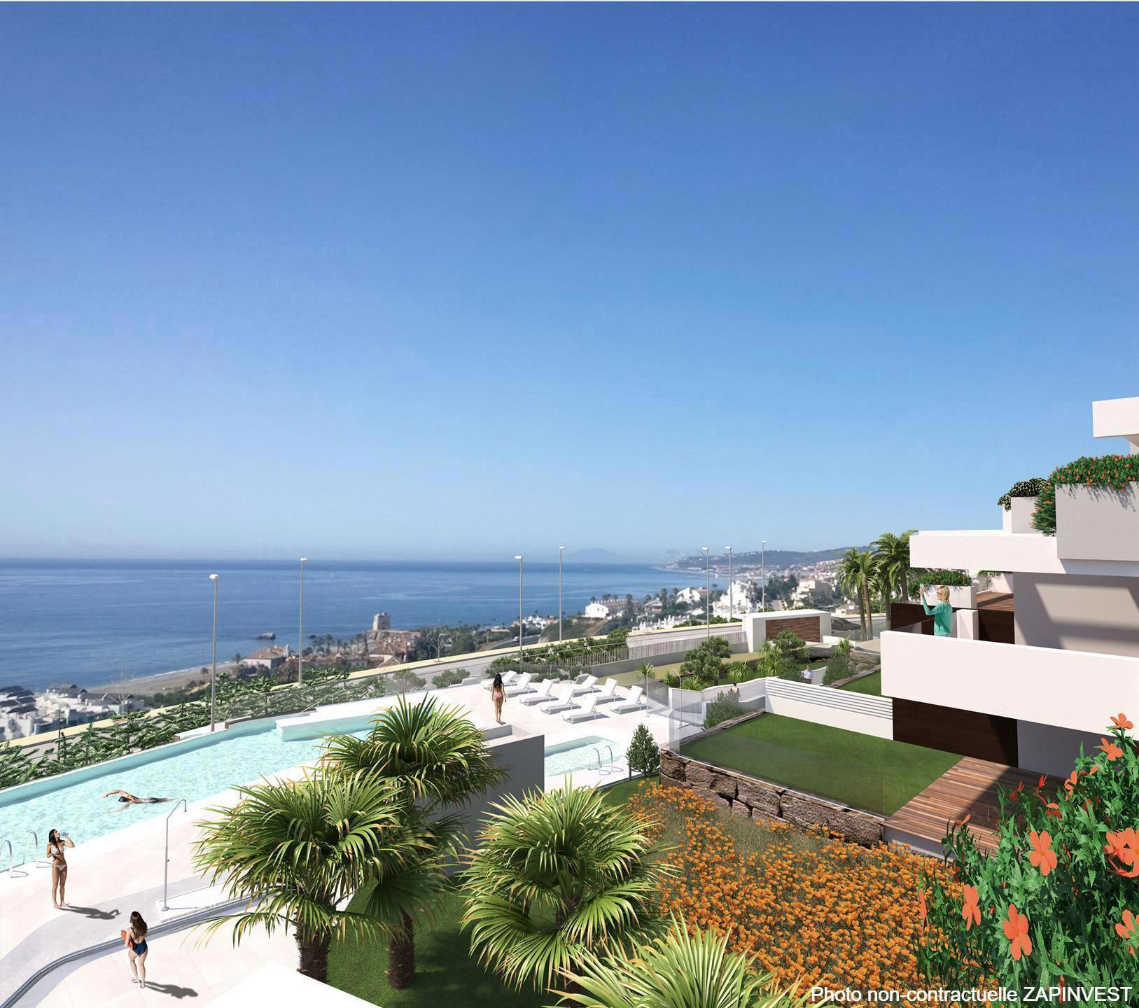 Plusieurs typologies différentes sont actuellement disponibles avec des espaces généreux, salon, salle à manger et cuisine complètement ouvertes avec îlot centrale, des chambres avec de belle superficies, de grandes terrasses avec pour la plupart, des vues panoramiques sur la mer et la montagne.