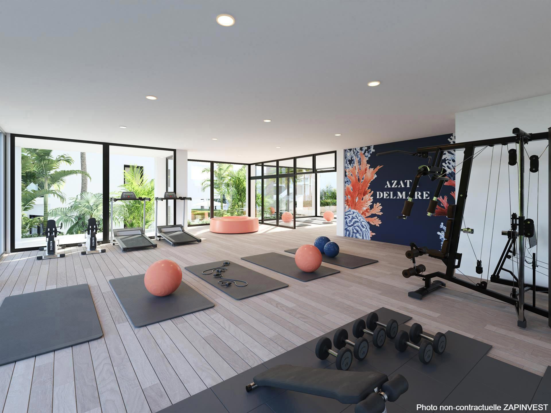 La résidence sera intégrée dans des zones communes entourées d'espaces verts, 1 grande piscine de type infinity ainsi qu'une salle ''co-working'' et un gymnase.