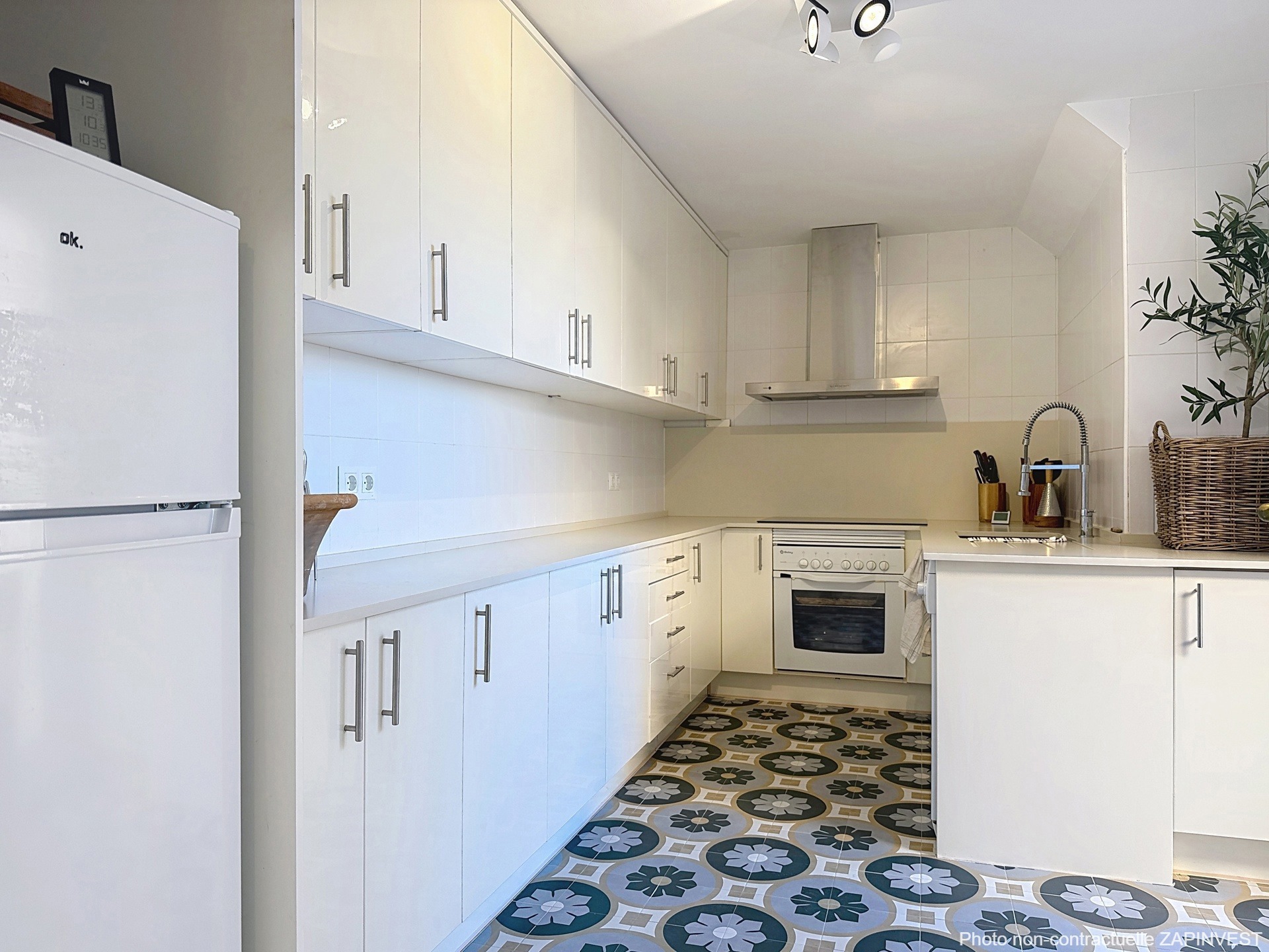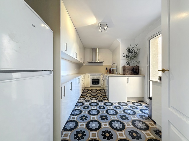 La cuisine spacieuse, entièrement équipée, se distingue par ses plans de travail en granit et ses finitions de qualité. Elle s’ouvre sur une terrasse orientée ouest, idéale pour les repas en extérieur, les apéritifs au soleil couchant ou les barbecues en toute convivialité.