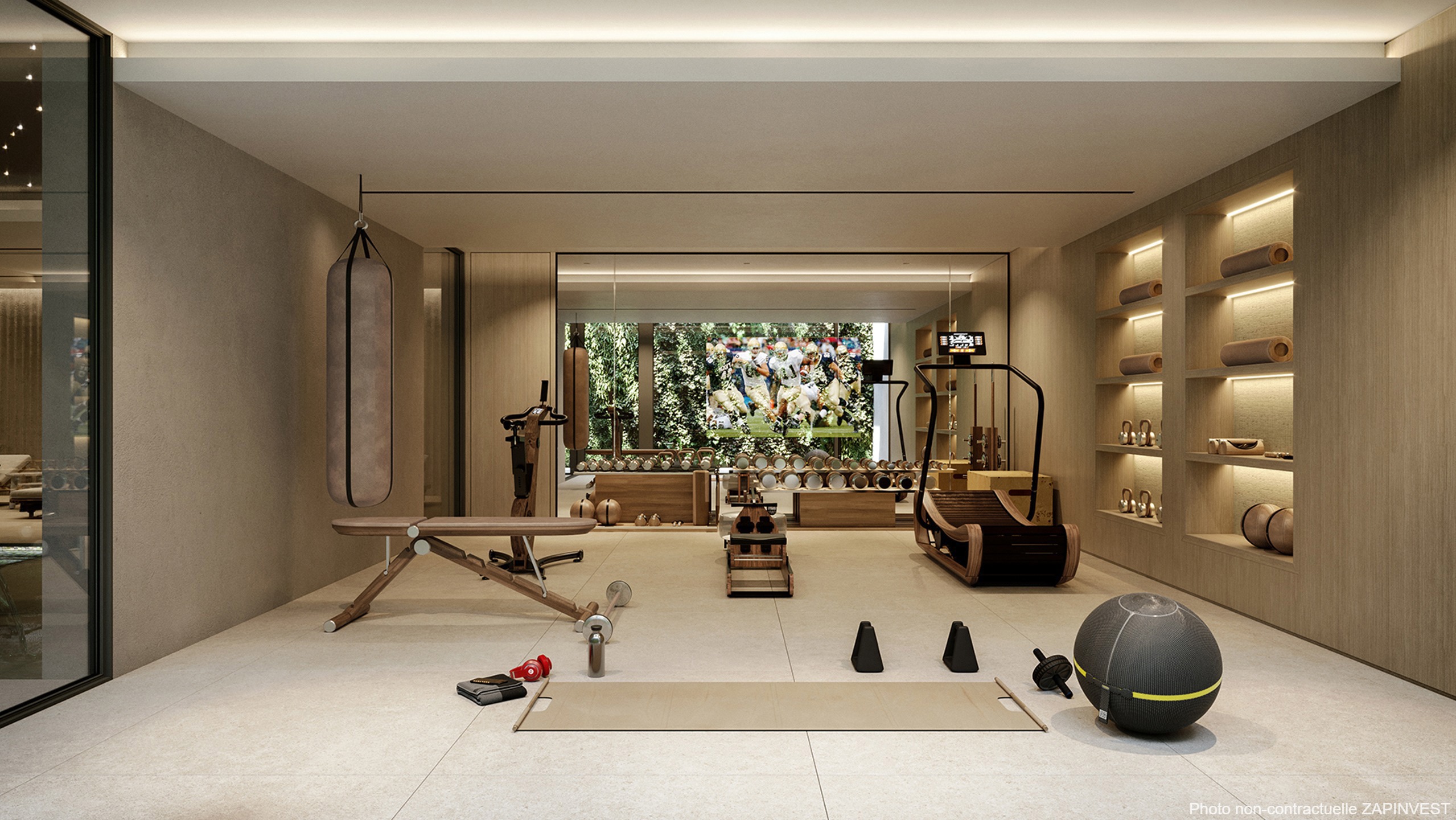La salle de sport de luxe est conçue pour promouvoir bien-être et vitalité à tout moment. Équipée de technologie de pointe et d'espaces spécialement conçus pour les exercices, elle offre des vues inspirantes, des écrans et une atmosphère élégante et relaxante.