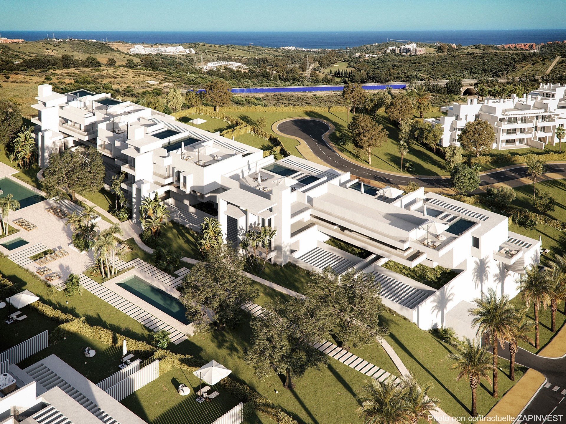 Ce havre de paix exclusif se situe à seulement 5 minutes du Golf d'Estepona, à 10 min de son port de plaisance et de son charmant centre-ville aux ruelles piétonnières typiquement andalouses.