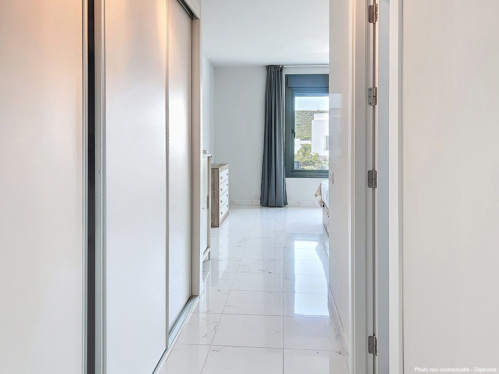 La résidence, à taille humaine, offre de belles prestations : 3 piscines communes, un terrain de padel et un environnement calme, situé au cœur d’un charmant golf 9 trous.