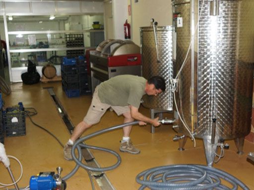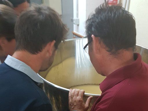 Nous descendons ensuite d’un niveau pour arriver dans le cellier. Les installations, petites, ne sont pas destinées à produire de grande quantité de vin (6000 litres environ); mais à notre grande surprise, elles sont très moderne. Argimiro nous explique que l’équipement est également destiné pour être utilisé par une école de viticulture et est donc complètement adapté à des visites didactiques.