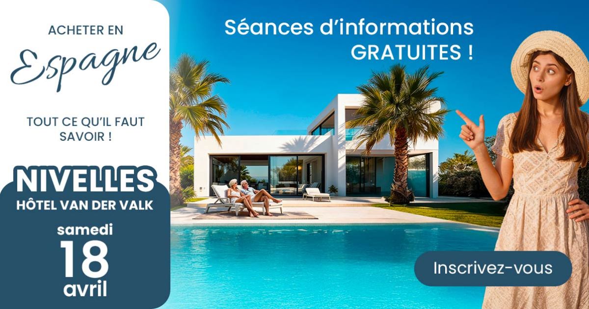 Au cours de ces différents types de rencontres, un idée est commune, vous donner un maximum d'informations sur l'immobilier en Espage et vous permettre d'avancer sereinement dans votre projet sous le soleil d'Espagne. Vous y rencontrerez nos spécialistes de l'immobilier espagnol qui vous présenteront les superbes possibilités d'investissement sur la Costa del Sol, la Costa Blanca Sud et la Costa Blanca Nord. Nous aborderons tous les sujets importants concernant les aspects juridiques, financiers, fiscaux,..